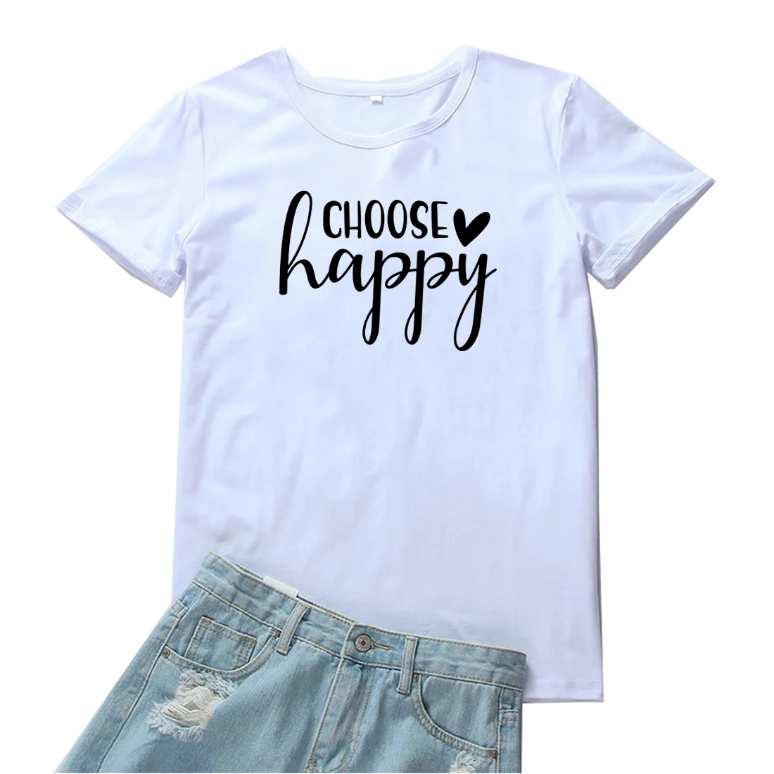 Выберите Happy футболка для женщин забавные вдохновляющие с принтом в виде надписей, женские футболки, хлопковая Футболка с круглым вырезом Женская футболка в стиле кэжуал, черные футболки для женщин
