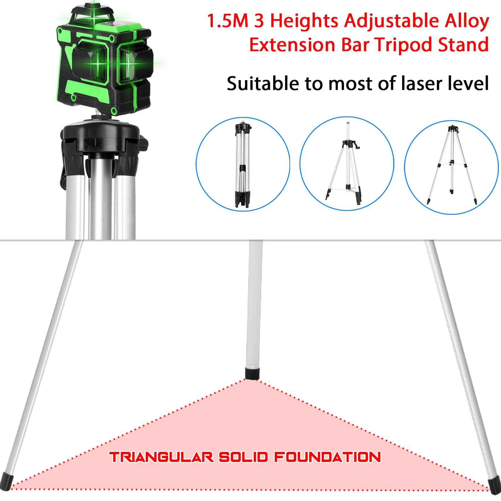3D лазерный измеритель уровня может излучать видимые Горизонтальные и вертикальные линии для автоматического выравнивания отдельно или одновременно. Обеспечивает точную горизонтальную и вертикальную базу данных для внутреннего строительства зазоров и калибровки, просты в эксплуатации и универсальны. Поставляется с одним удлинительным стержнем, который изготовлен из утолщенного алюминиевого сплава, 3 высоты регулируется, подходит для большинства лазерных уровней с 5/8 "интерфейсом. Идеально подходит для разметки напольной плитки, обшивки стен, обрезки стен, обрезки стен, ковки, отделки столярных изделий, обрезки стен и установки перегородок. Вы можете попробовать. Особенности: Выход 12 лазерных линий для более точного позиционирования, с системой самонивелирования, гибкость и стабильность. Вращающееся на 360 ° основание, оснащенное механизмом тонкой регулировки, может сделать машину быстро найти цель. 1/4 "размер винта для легкого подключения, его можно использовать с штативом для регулировки рабочей высоты машины. Поставляется с настенным кронштейном, может быть легко прикреплен к напольной плитке, настенным наклейкам и потолкам, все Шаг 7 мм. Водонепроницаемый и пылезащитный, подходит как для внутреннего, так и для наружного использования. Используется Оптическое стекло, материал K9, Точная передача, Прозрачный лазерный светильник. Оснащен функцией самостоятельной калибровки, ≤ 3 ° автоматическое выравнивание, но если угол над 3 °, лазерный светильник будет продолжать мигать, Напоминая вам, чтобы сбросить их на ровную поверхность. Конструкция поворотной ручки, вращение по часовой стрелке, чтобы открыть его, вращение против часовой стрелки, чтобы закрыть его. Две сенсорные кнопки дизайна, одна кнопка OUT/H, одна кнопка V, горизонтальная линия и вертикальная линия с четким разделением. Кнопка износостойкая, с высокой чувствительностью, чтобы быстро Переключить Линейный режим, и с комфортным ощущением руки. Легко носить с собой чехол, обеспечивая быструю и удобную мобильность и хранение. Удлинитель: Изготовлен из утолщенного алюминиевого сплава, прочный с тонким подшипником, не легко деформируется и не легко ломается. Три высоты регулируется, вы можете легко настроить в соответствии с вашими требованиями. Оснащен пузырьковым уровнем, чтобы помочь вам проверить, является ли штатив горизонтальным или нет. Оснащен качалкой для регулировки высоты штатива, плавность и экономия усилий. С фиксированным плечом для управления, чтобы увеличить длину, чтобы плотно зафиксировать его. Подходит для большинства лазерных уровней с 5/8 "интерфейсом. Примечание: Устройство лазерного вывода расположено на выходном отверстии. Не смотрите прямо на лазерный светильник. Не разбирайте инструмент и самостоятельно выполняйте внутренний ремонт. Этот инструмент соответствует стандарту безопасности лазерного излучения. Характеристики: Название: лазерный уровень Основной материал: пластик + металл Батарея: 2*18650 3,7 в 2400 мАч(В комплекте, вы обнаружите, что внутри есть две батареи 18650, если разобрать их) Лазерный луч: 3D, 12 линий Диапазон: 30 м Лазерные линии точность: ± 0,2 мм/м Лазерный светильник, цвет: зеленый светильник Самонивелирующийся диапазон: ± 3 ° Время выравнивания: <4s Класс лазера: 2 Рабочая температура: от-10 ℃ до 40 ℃ Температура хранения: от-20