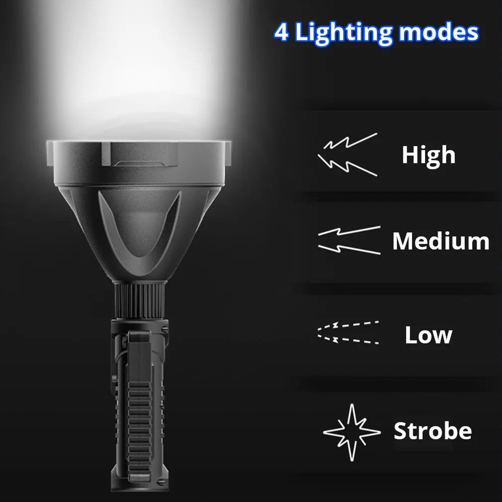 1. Сильный светильник для дальней съемки: наружный перезаряжаемый светодиодный светильник для поиска имеет сильный светильник для дальней съемки до 1500 метров, а Яркий фитиль имеет большое расстояние бликов.