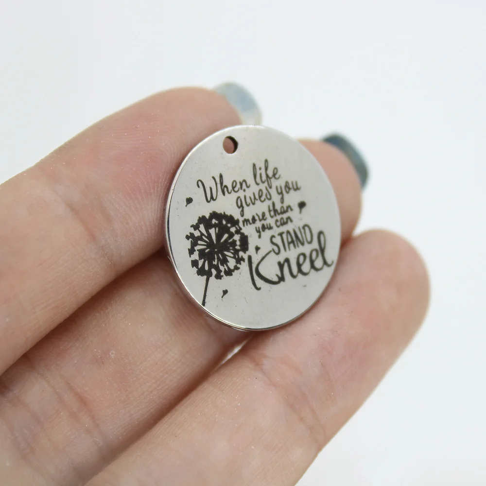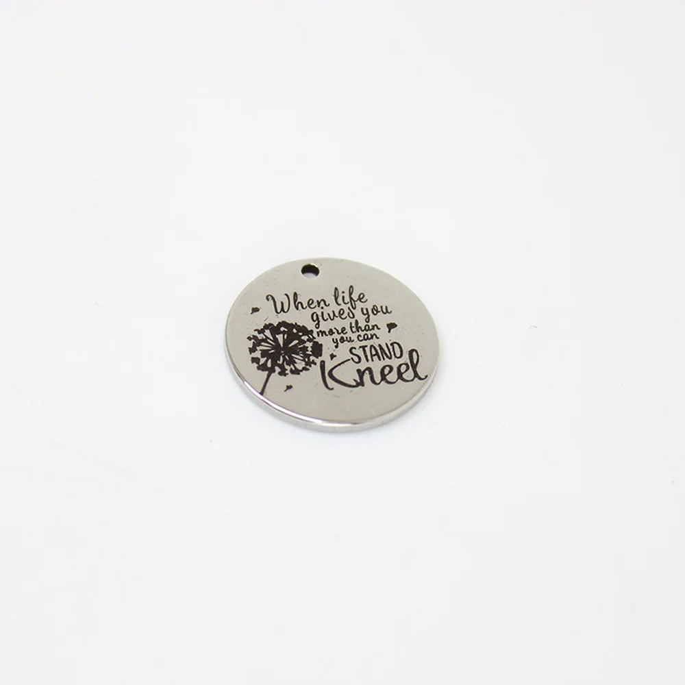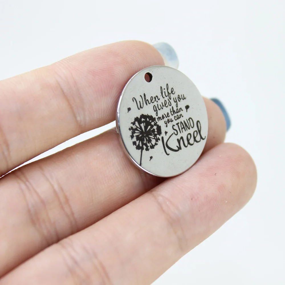 8 шт.лот-когда жизнь дает вам больше, чем вы можете стоять, Kneed диск из нержавеющей стали с лазерной гравировкой, подвеска-послание 22 мм