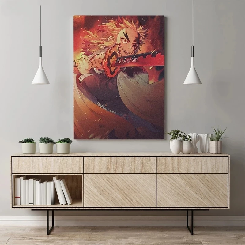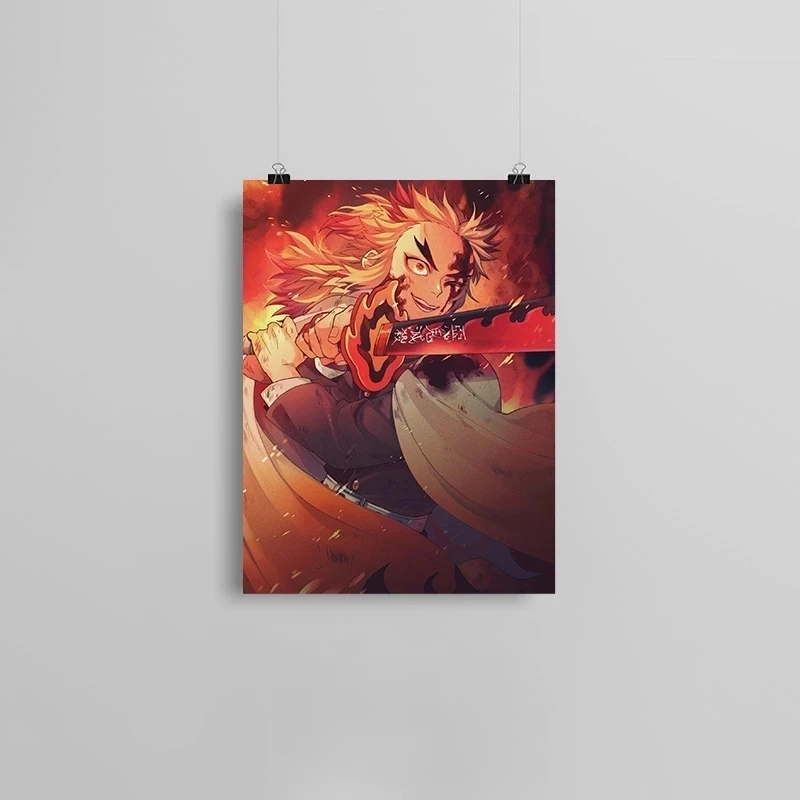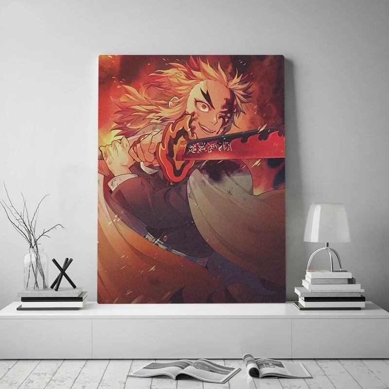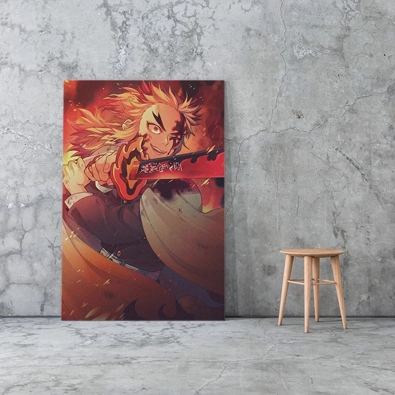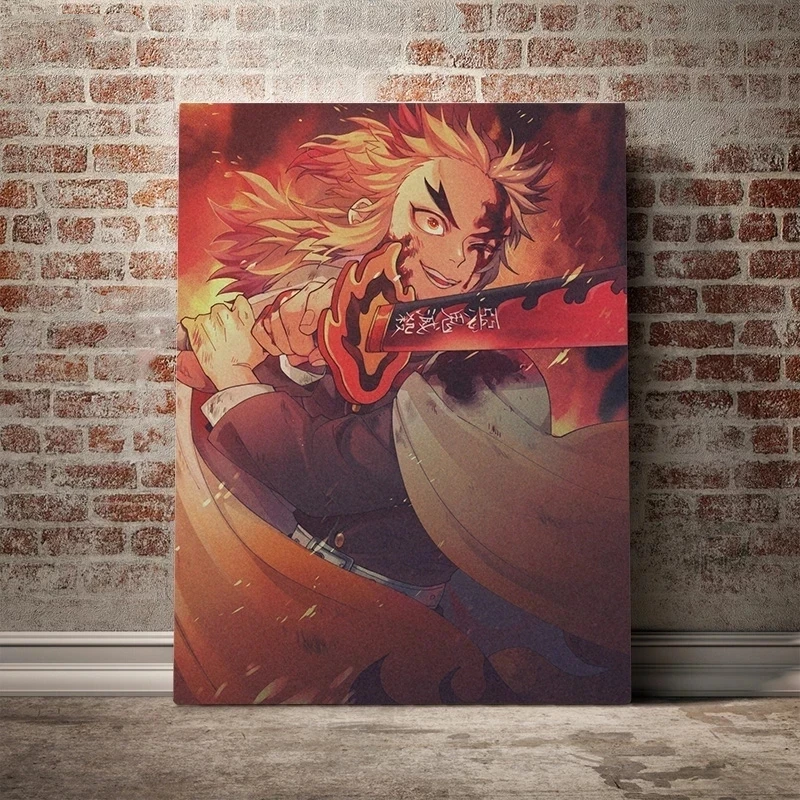 Kyojuro Rengoku аниме Бескаркасный плакат холст стена арт-деко прин...