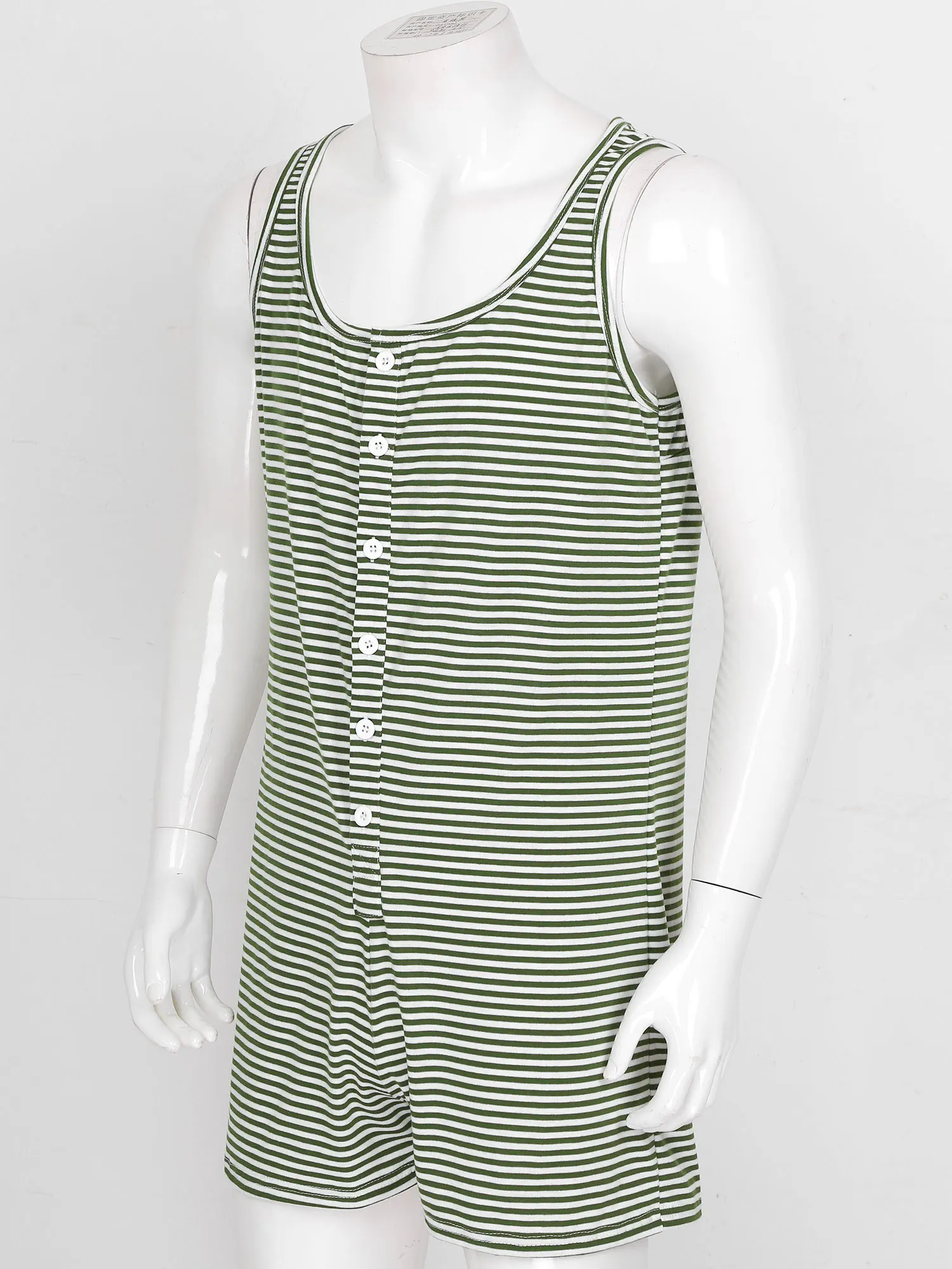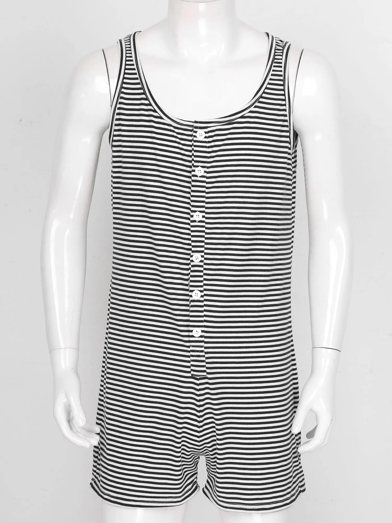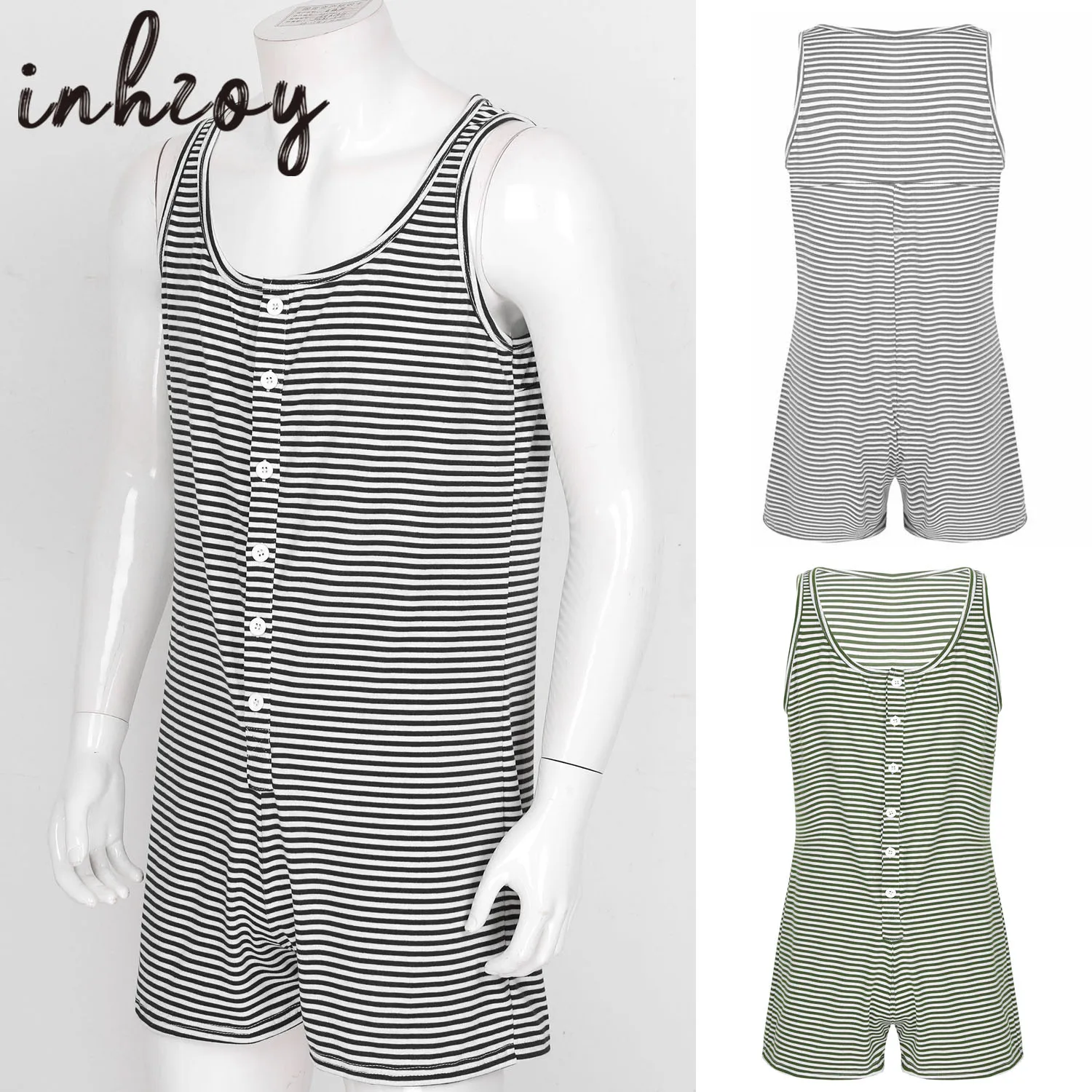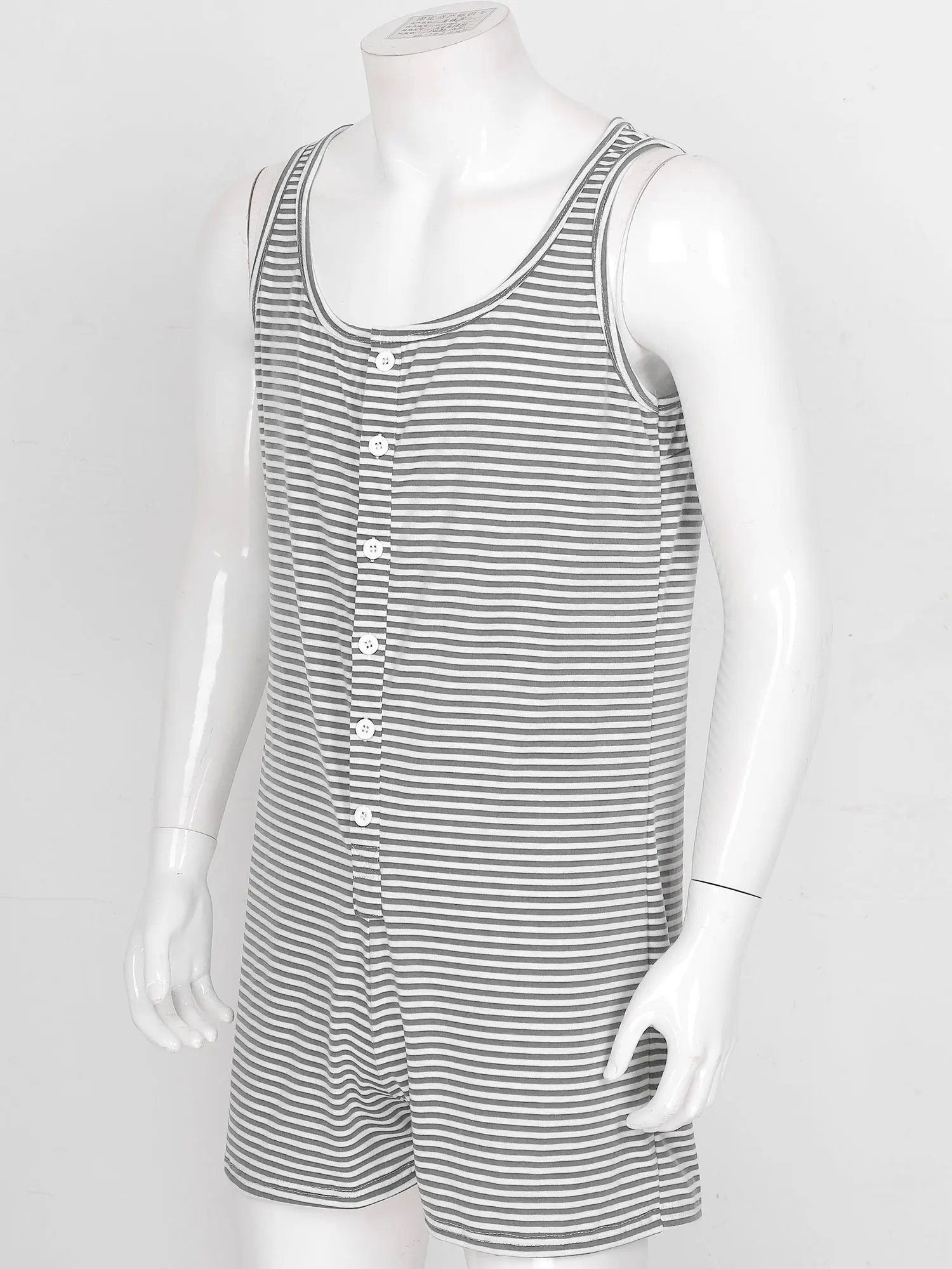 Мужская повседневная полосатая пижамная ночная рубашка, боди на пуговицах, комбинезон, короткий комбинезон.
