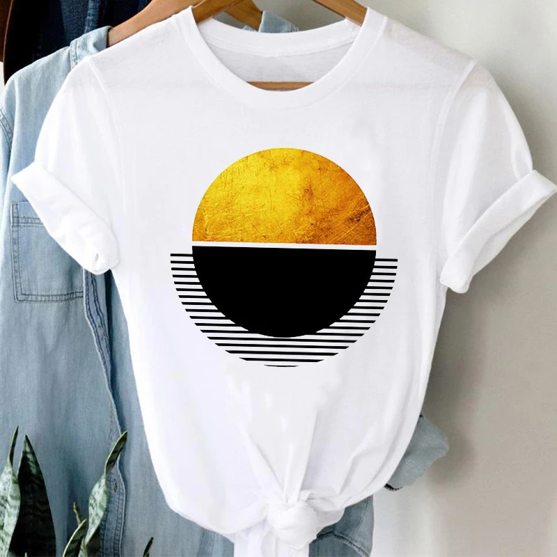 Повседневная офисная Милая женская футболка с геометрическим принтом, Повседневная Базовая белая рубашка с круглым вырезом, женская футболка с коротким рукавом, Прямая поставка