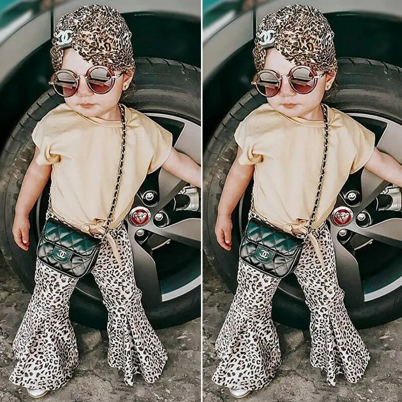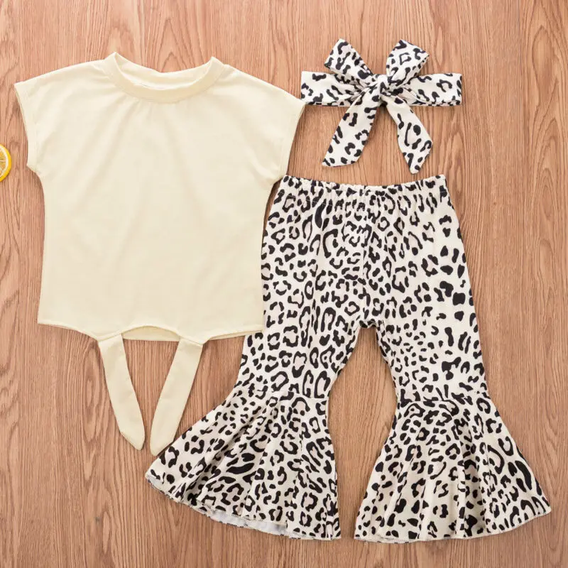 От 0 до 5 лет новорожденных, малышей и детей младшего возраста состоящий из для маленьких девочек, одежда для девочек топ без рукавов + длинные брюки с леопардовым принтом + повязка на голову, Детский комплект