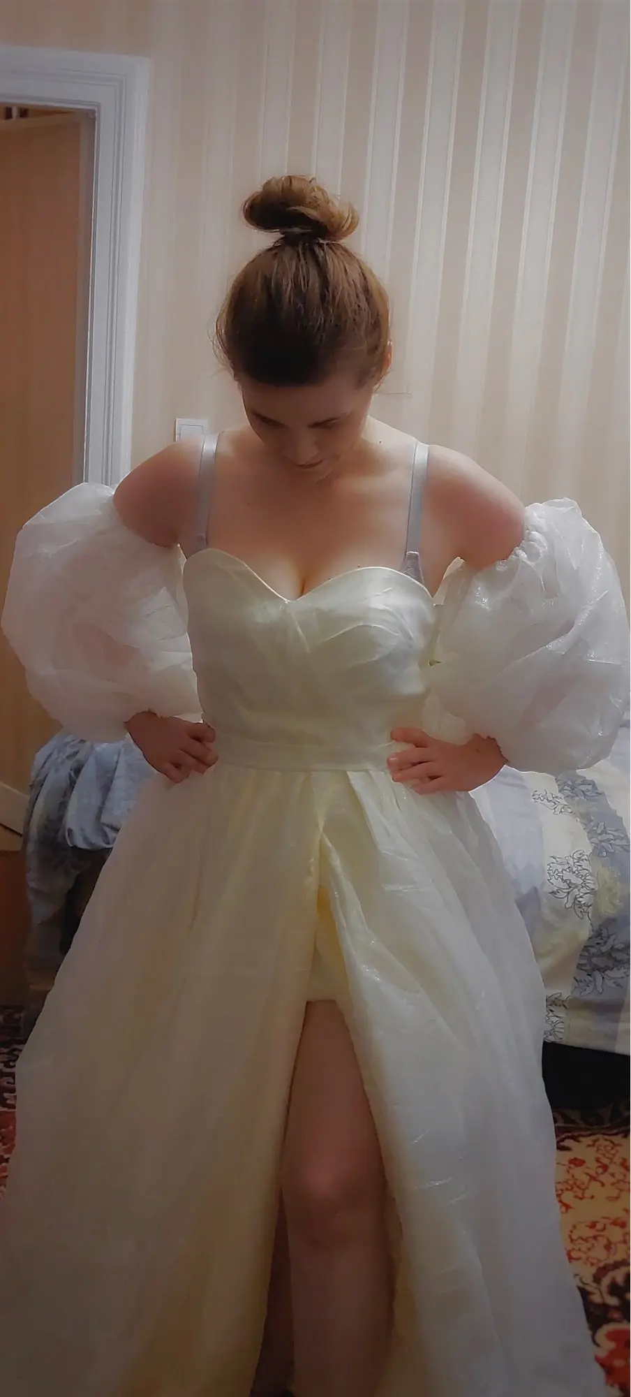 В принципе все отлично ) цвет выбирала как на картинке, но в реальности он молочный , и оно из вечернего платья превратилось в свадебное . После первой примерки показалось что великовато в груди. Проверь после старинки и нормальной примерки. Платье тяжелое и для лета супер жаркое ) так как это у меня было первое платье такого плана, я не знала этих нюансов ) на данный момент я довольна )