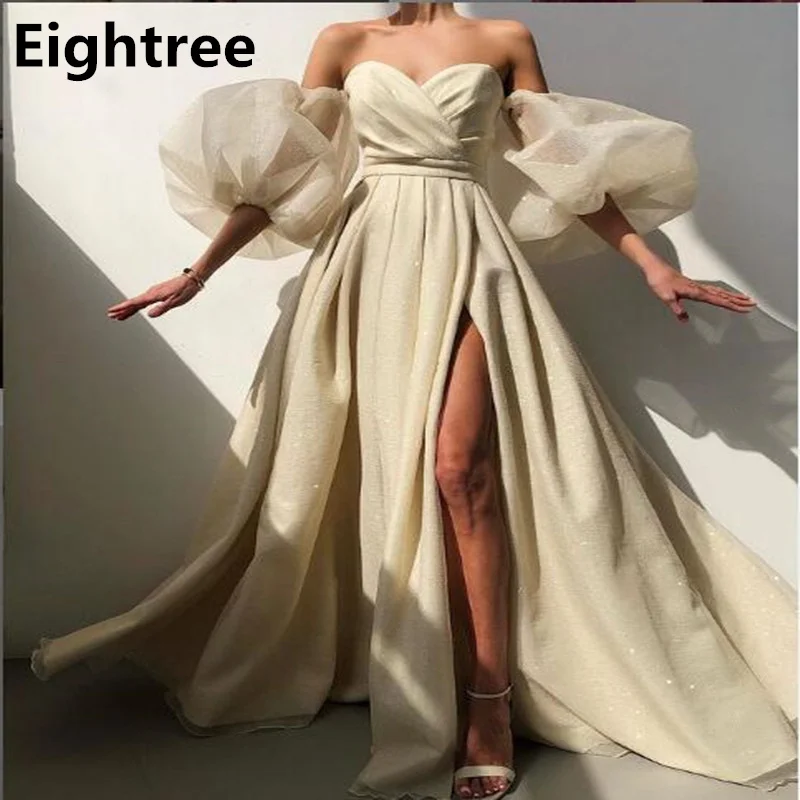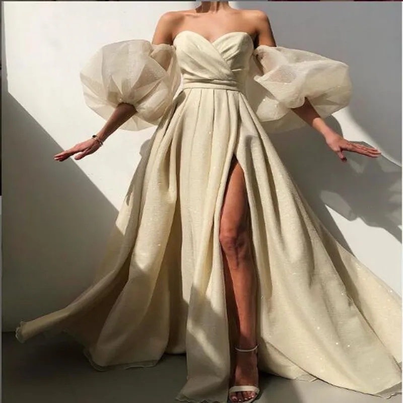 Вечерние платья-трапеция с открытыми плечами, плиссированные вечерние платья до пола с высоким разрезом, вечернее платье для вечеринки