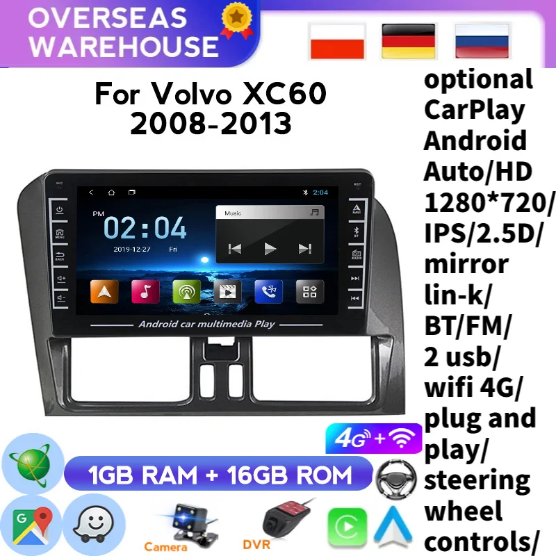Автомобильный радиоплеер, 8 дюймов, Android, для Volvo XC60 2009-2017, GPS, Wi-Fi, Carplay, стерео, FM, 1 ГБ, 16 ГБ, 1280*720P, без DVD