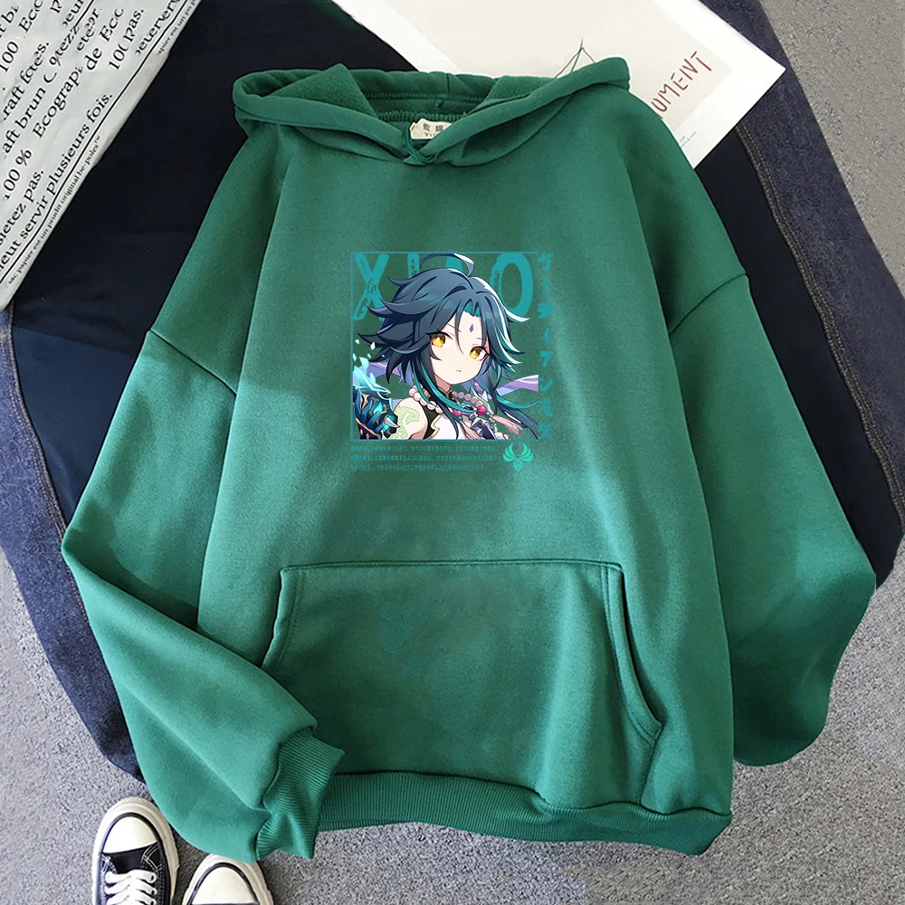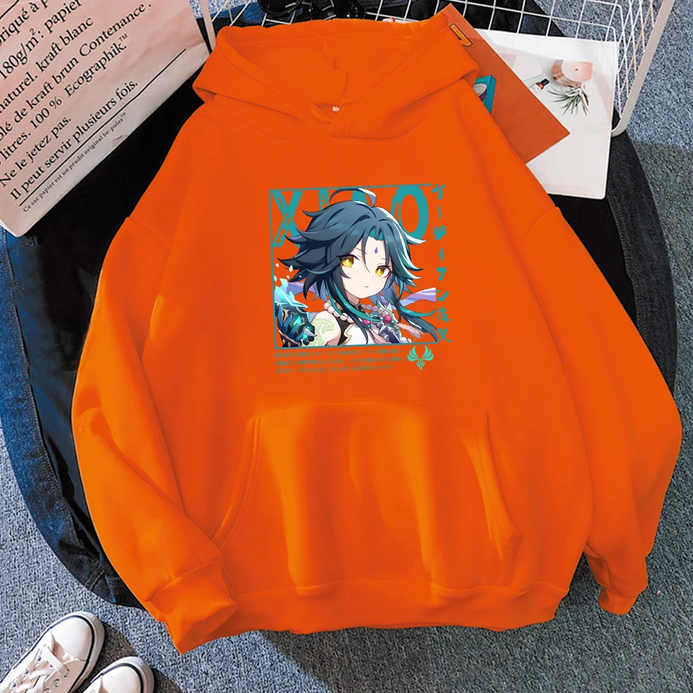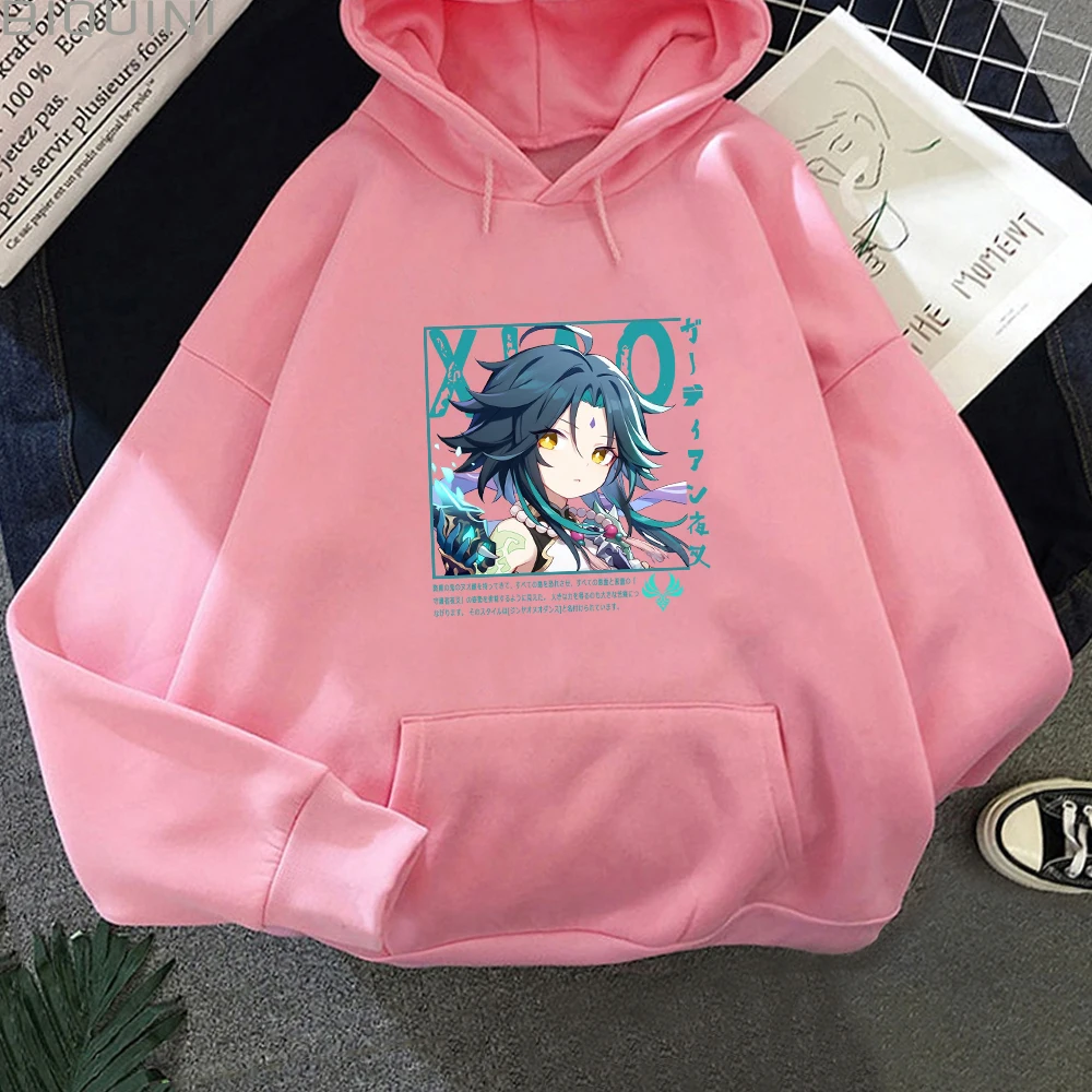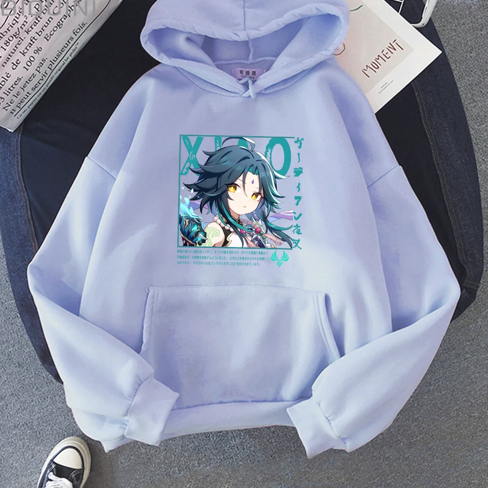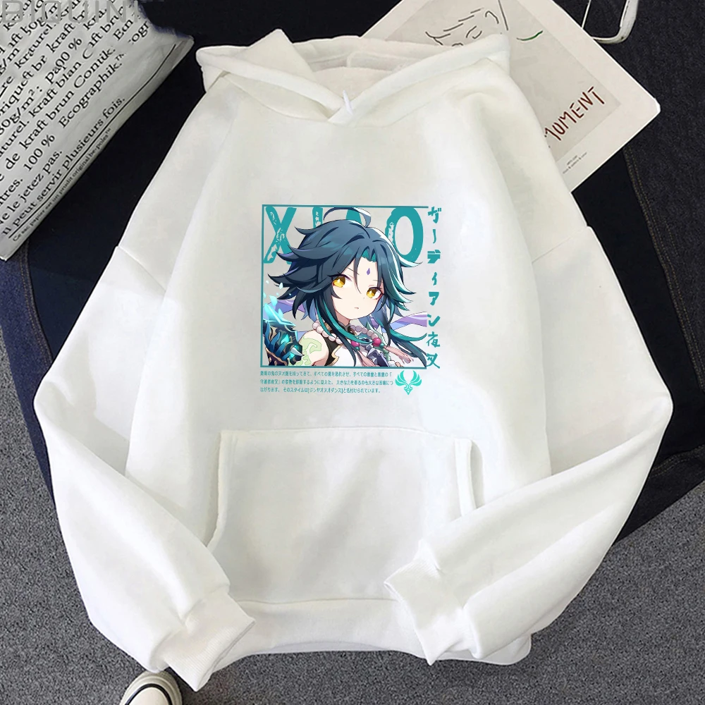 Толстовки Genshin Impact для женщин, новинка 2021, модная Осенняя кавайная крутая уличная одежда с принтом Xiao, Мужской пуловер, мультяшный Свитшот оверсайз
