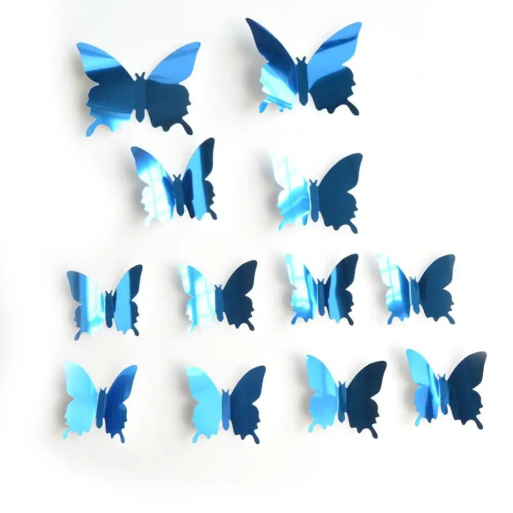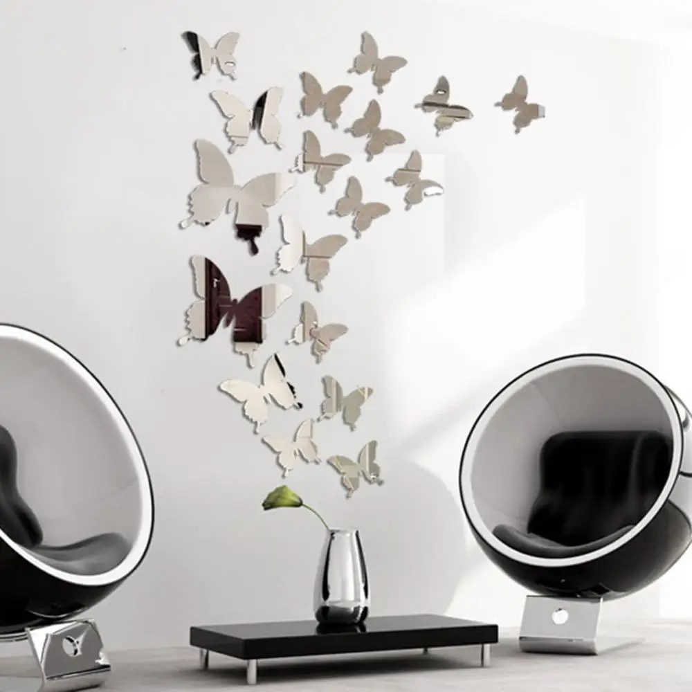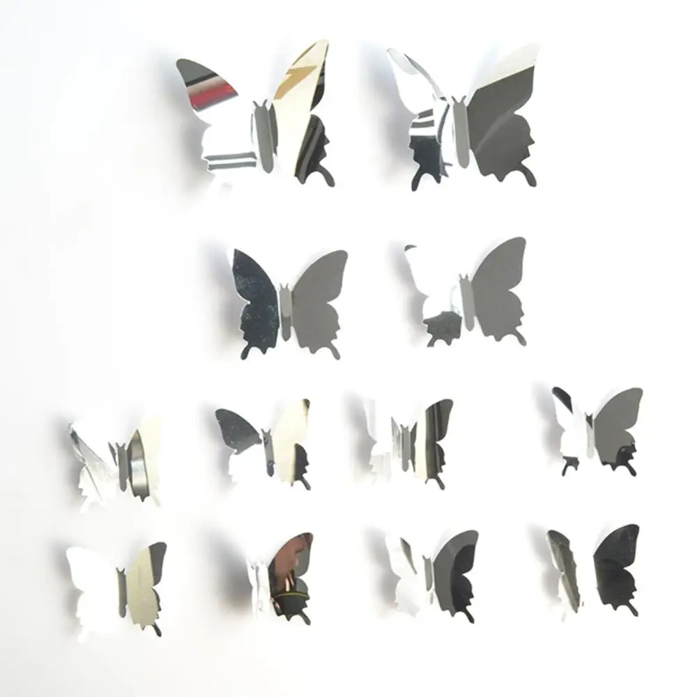 Зеркальная настенная 3D наклейка в виде бабочки, 12 шт.лот, переводная картинка, съемное свадебное украшение, декоративная наклейка для детской комнаты