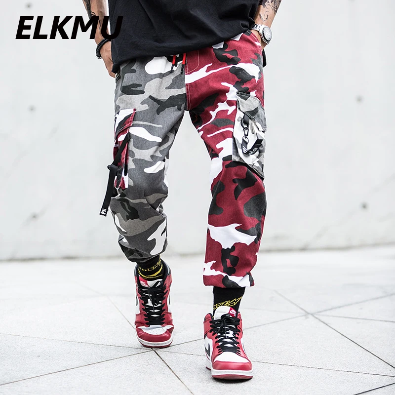 ELKMU камуфляж Джоггеры мужские Уличная Брюки карго камуфляж пэчворк штаны шорты мужские модные штаны с карманами и эластичной резинкой на талии; HM211