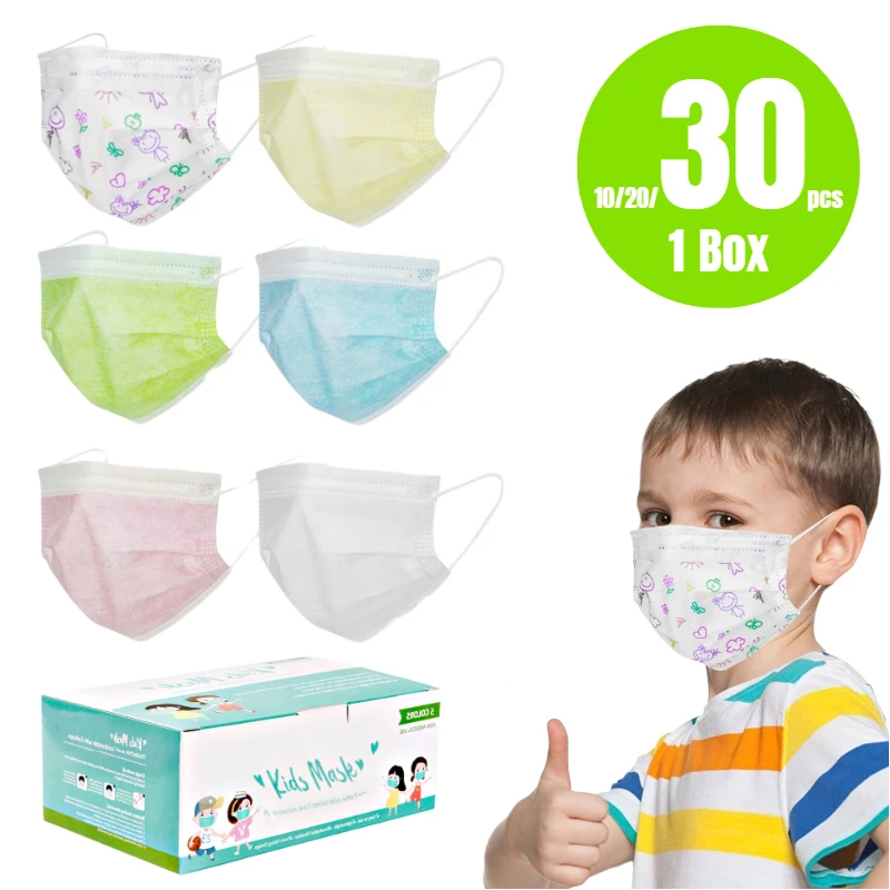 Гигиена Уход за лицом защиты одноразовые мальчик и девочка Красочные Маски для детей в возрасте от 3-Слои маска 20PCUnisex Mascarillas