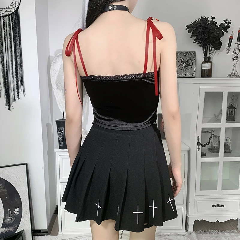 Helisopus, Готическая Эстетическая майка, Харадзюку, гранж-панк, черные женские корсетные топы, панк, уличная одежда, летние укороченные топы с открытой спиной