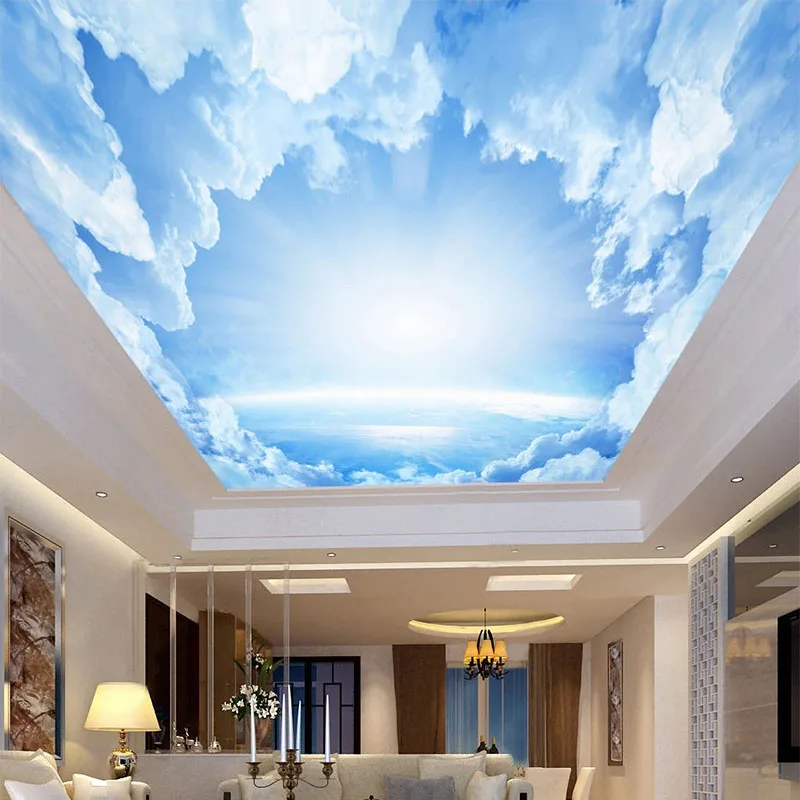 Фотообои на заказ 3D фантазия небесно-голубое небо и белые облака настенная живопись Европейский стиль потолочные обои 3 D