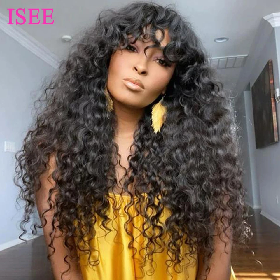 Парик ISEE из натуральных кудрявых волос, 360, плотность 150%, перу...