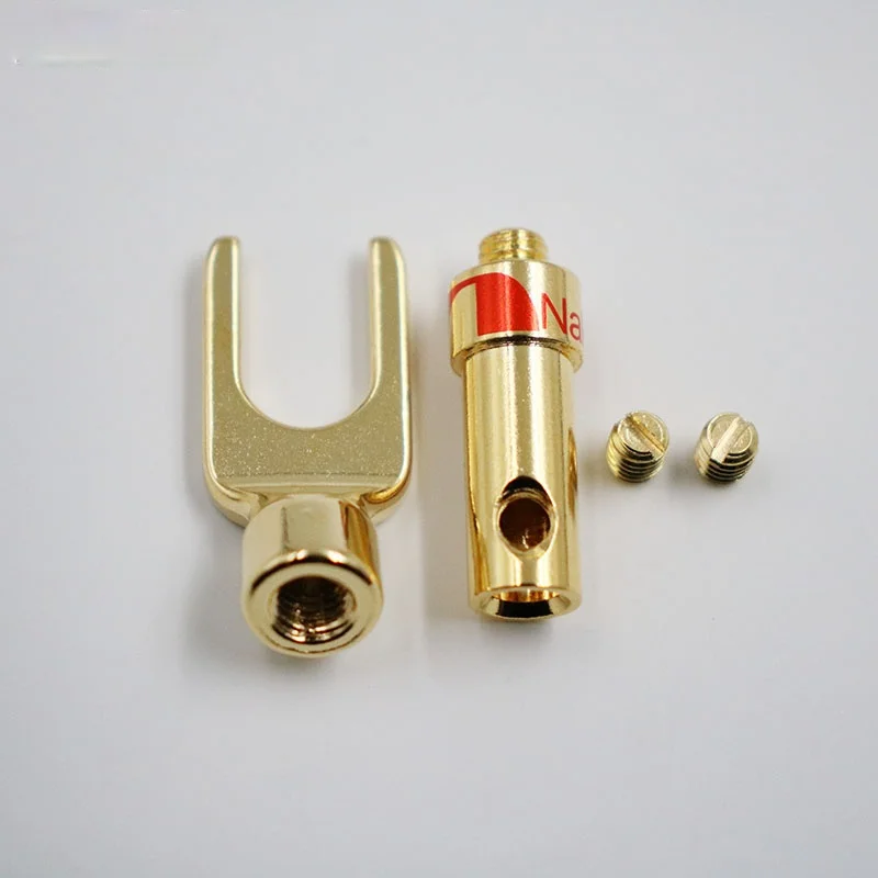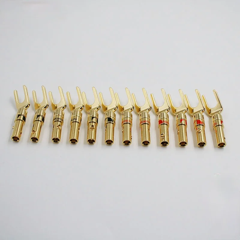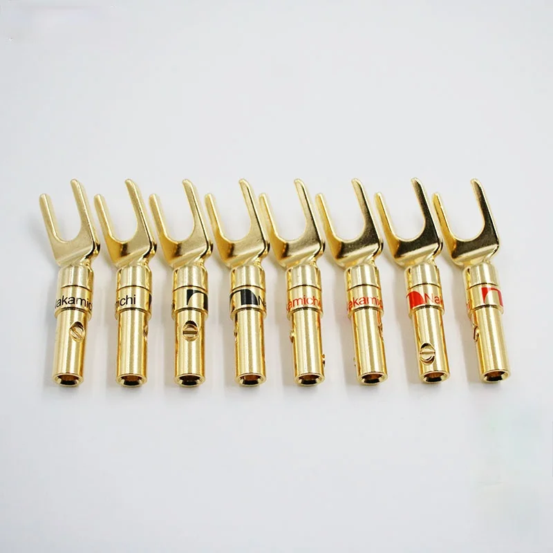 16 шт. Бесплатная доставка Nakamichi Латунь Позолоченные и посеребренные Y лопата Динамик Вилки Аудио Винт вилочный соединитель Адаптер