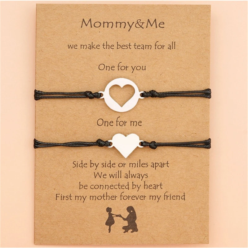 Браслеты для мамы и дочки, комплект из 2 предметов, одинаковые ювелирные изделия из нержавеющей стали с сердечками и бабочками, подарок, браслет на День Матери