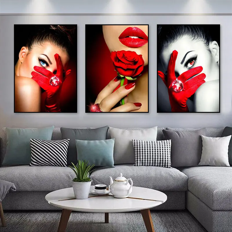 Черно-белые Стильные красивые плакаты и принты, сексуальные красные фотообои с рисунком, художественные картины, домашний декор, фреска
