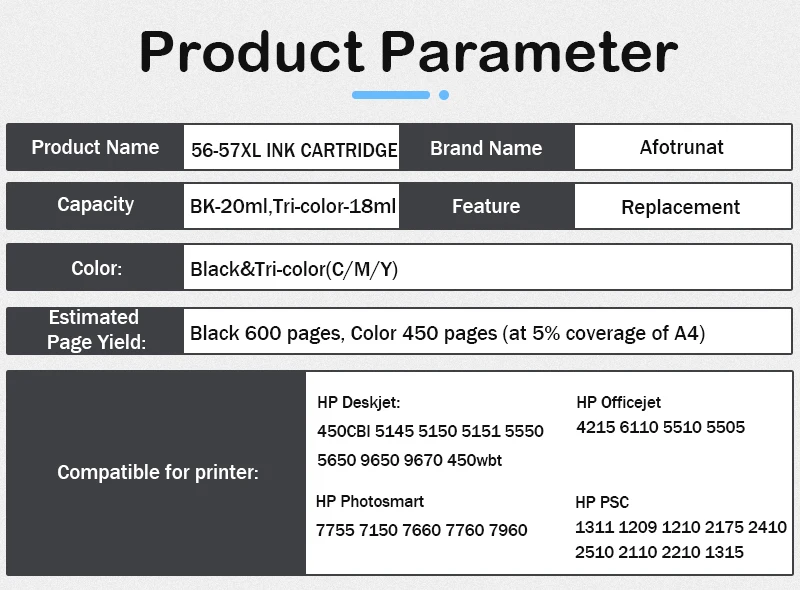 Фотокамера Afotrunat 56XL 57XL, запасная деталь 56 57 XL для принтеров HP DeskJet 450ci 5150 5550, 4212 4215