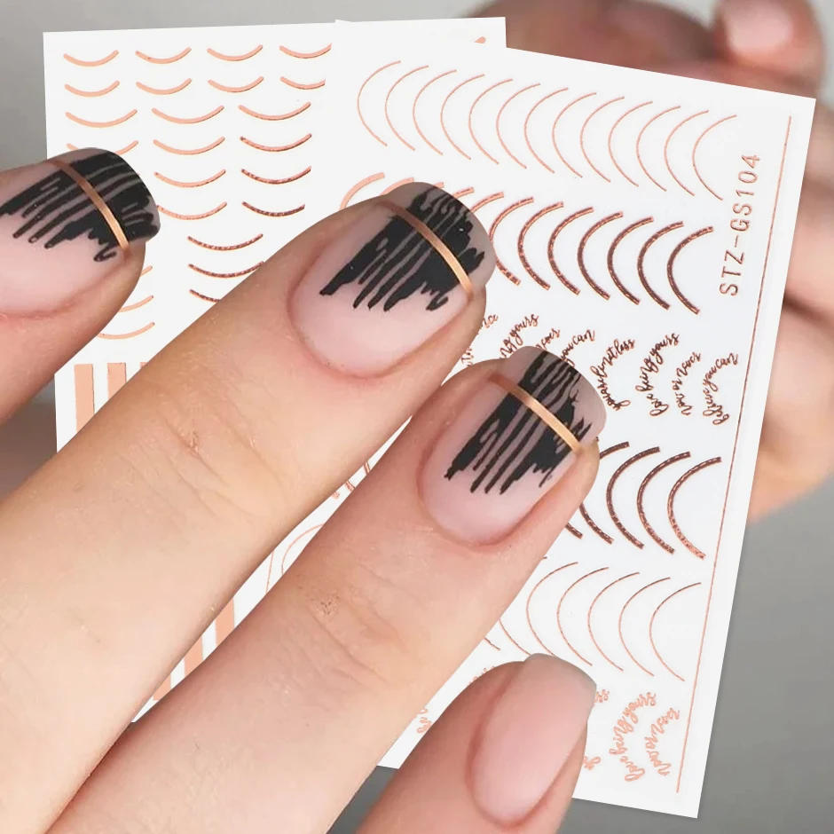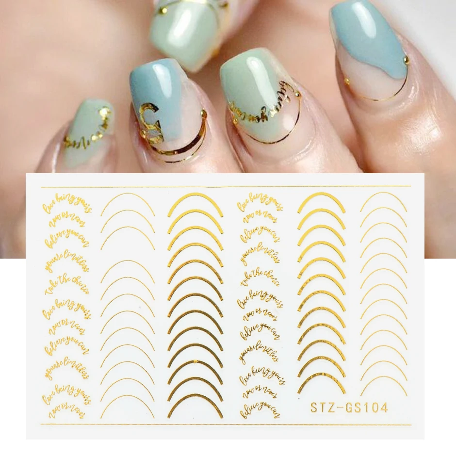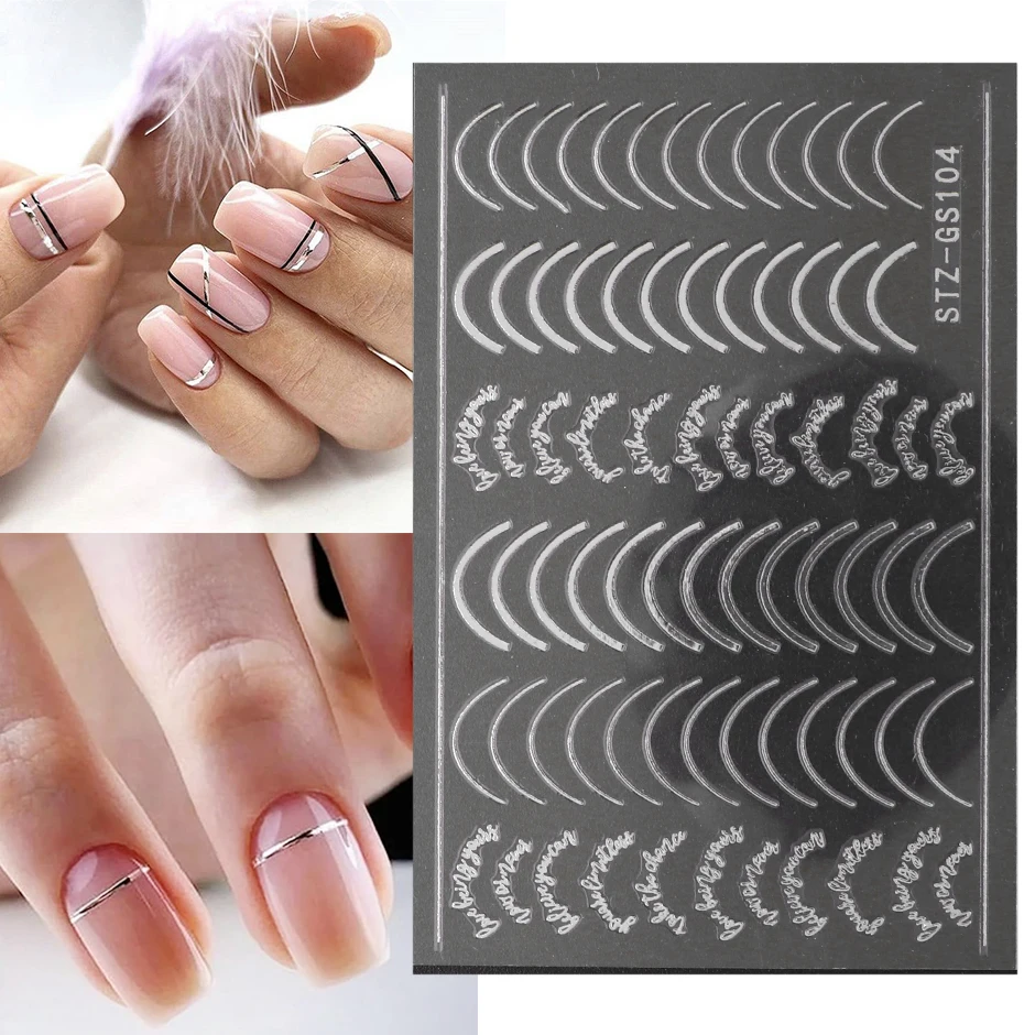 3D Золотая Серебряная полоска, Геометрическая лента для дизайна ногтей, металлическая блестящая наклейка для ногтей, лак для маникюра, фольга для ногтей NTSTZ-GS104