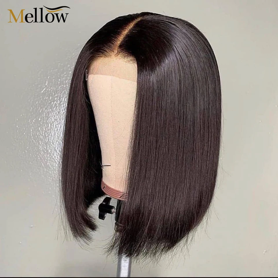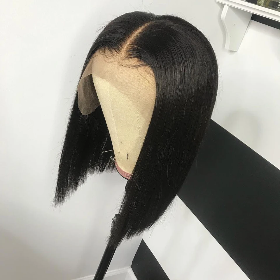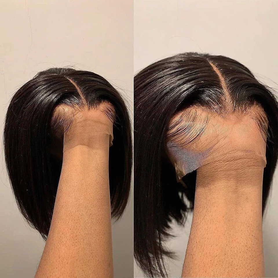 Прямой короткий парик Боб T-образной формы, парики из натуральных волос на сетке с тупым вырезом 13 х1, парики на сетке для женщин, предварительно выщипанные отбеленные узлы