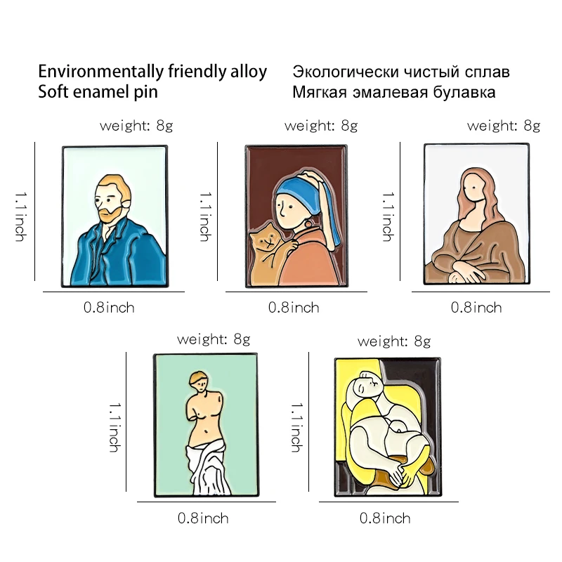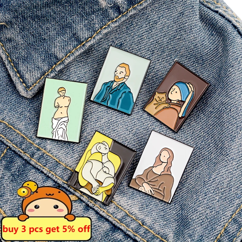 Живопись, искусство, брошь, значки Винсента Ван Гога, венерина де Мило, знаменитая масляная живопись, эмалированная булавка, подарки для художника