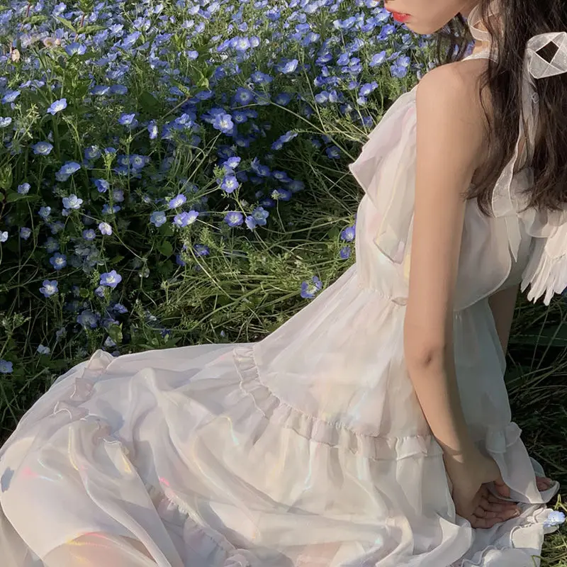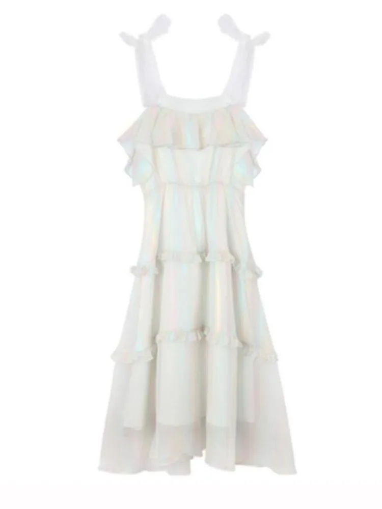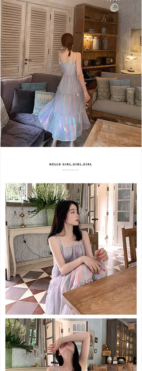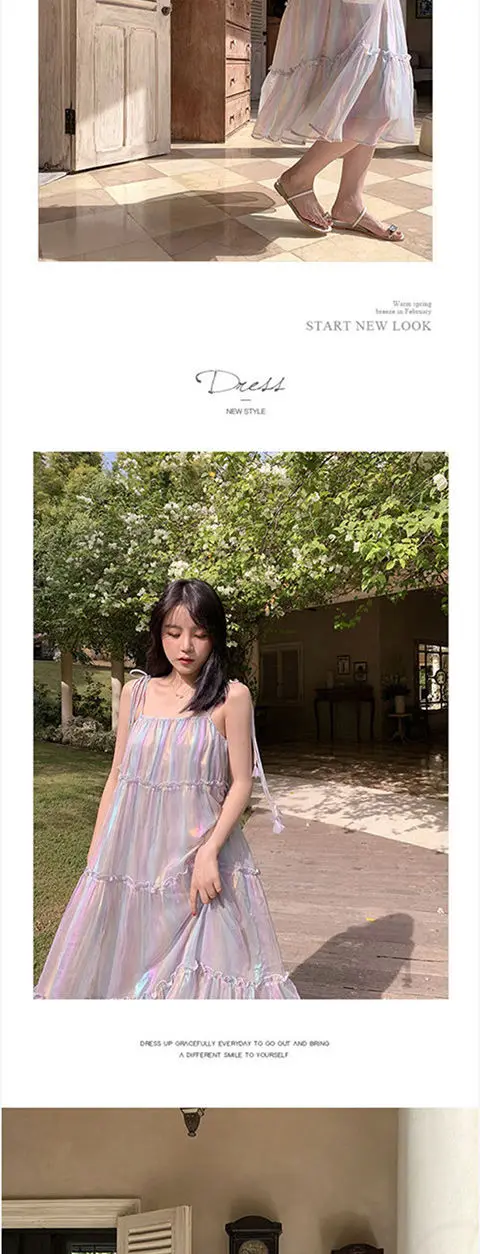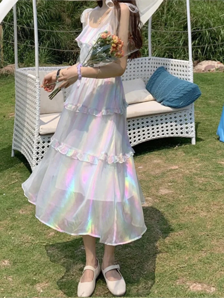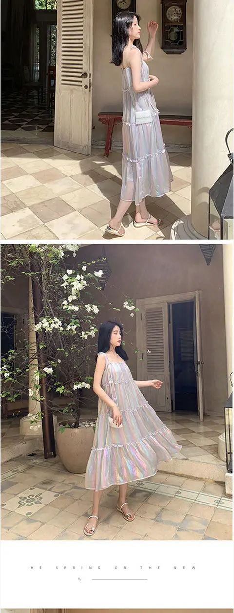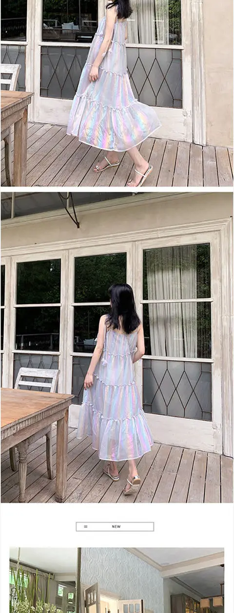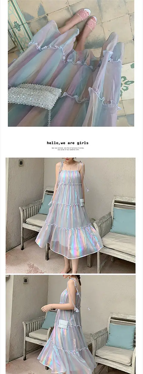 Платье женское Радужное на бретелях-спагетти, шикарный пляжный вечерний сарафан, красочная милая одежда с оборками в Корейском стиле