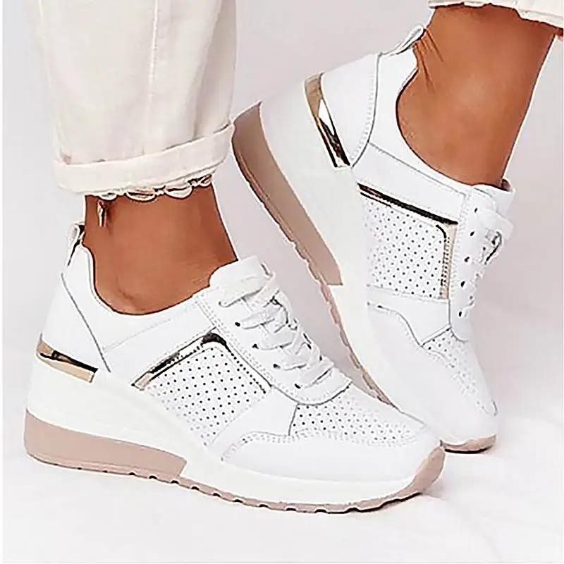 Женские кроссовки 2022, дышащие повседневные кроссовки на платформе, женская летняя обувь со шнуровкой, женская обувь на танкетке