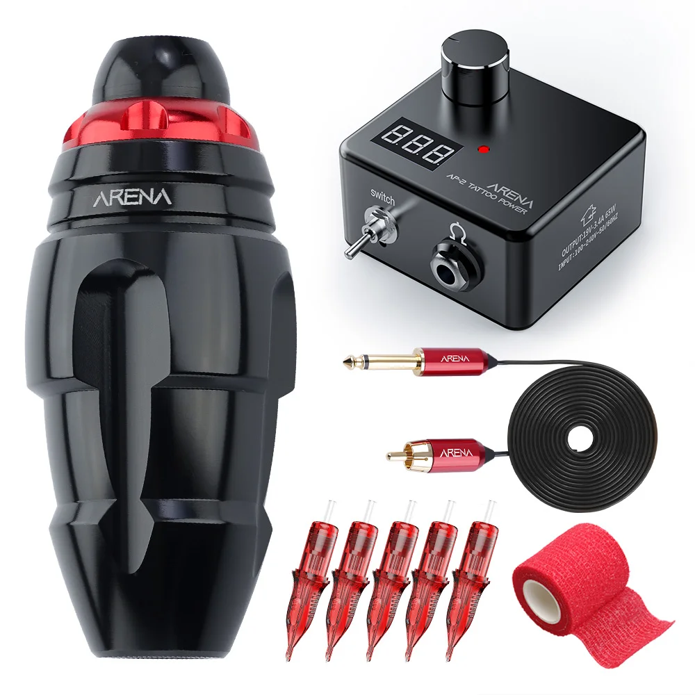 Арена уникальная Татуировка роторная машина пистолет набор с AP-2 цифровой переключатель Портативный OLED источник питания Комплект Перманентный макияж тату ручка