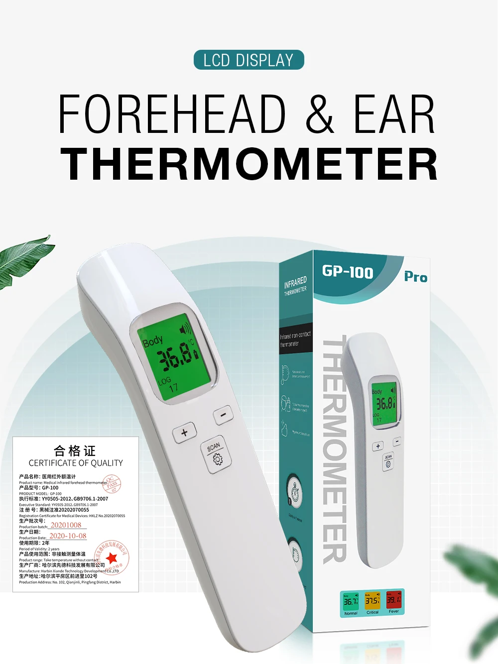 Бесконтактный пистолет для фронтальной температуры, Мгновенное измерение, светодиодный дисплей, функция памяти, автоматическое отключение пальца, Пульсоксиметр