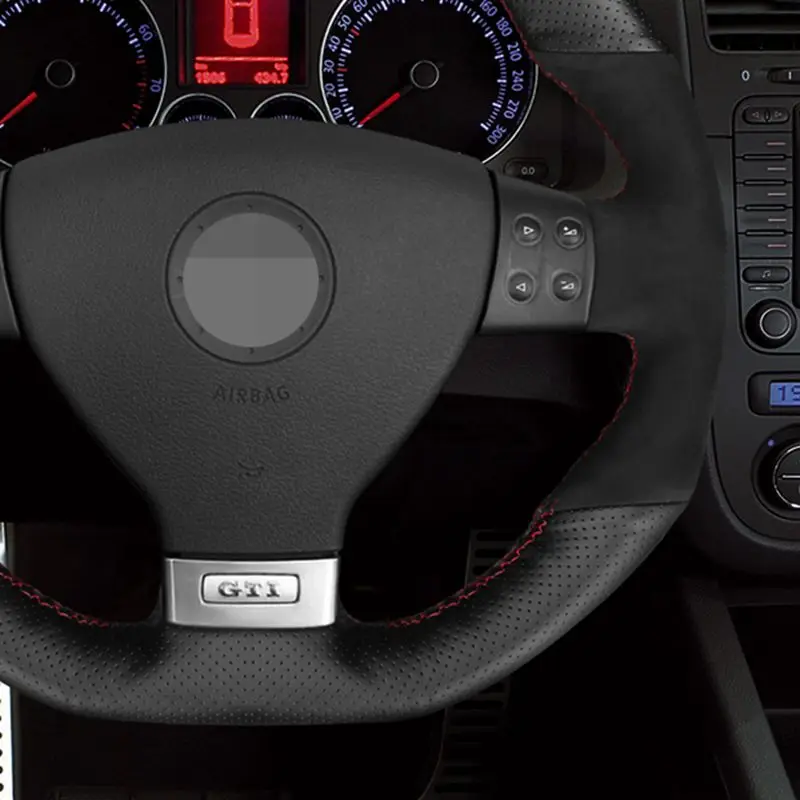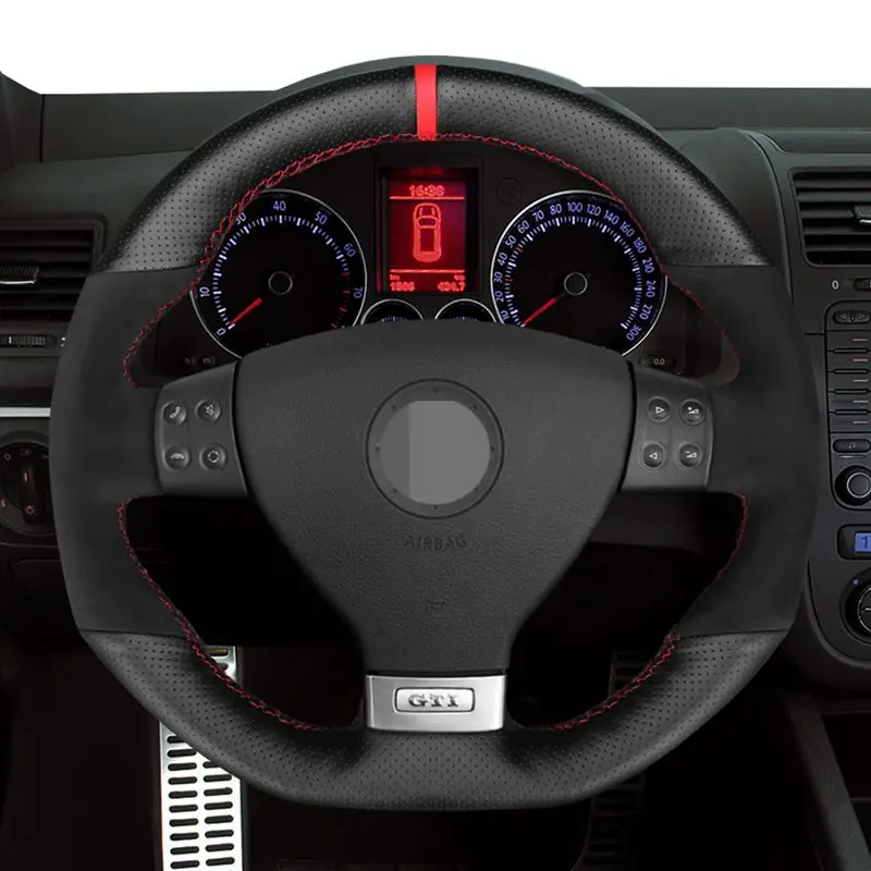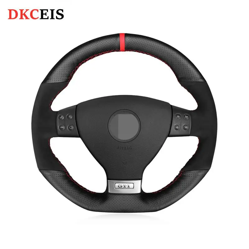 Замшевые ботинки черного цвета из натуральной кожи чехол рулевого колеса автомобиля для Volkswagen VW Golf GTI 5 (V) Гольф R32 Scirocco Tiguan