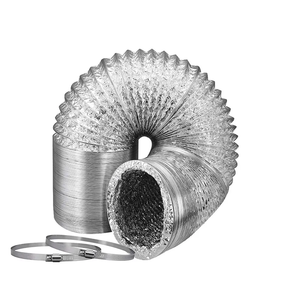 Прочная, Гибкая стальная проволока поддерживает сверхпрочные трехслойные стенки воздуховодов; ПЭТ ядро зажато в слоях огнеупорного алюминия, который может обрабатывать температуры от-22 до 266 по Фаренгейту.
