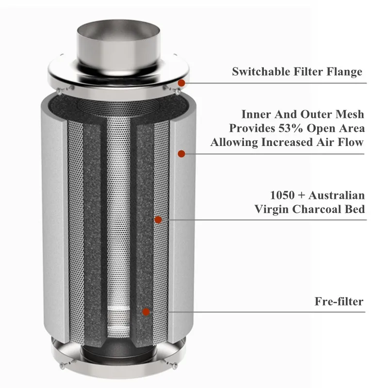Угольный фильтр устраняет нежелательные запахи, резкие запахи и частицы из комнатных палаток и гидропоники