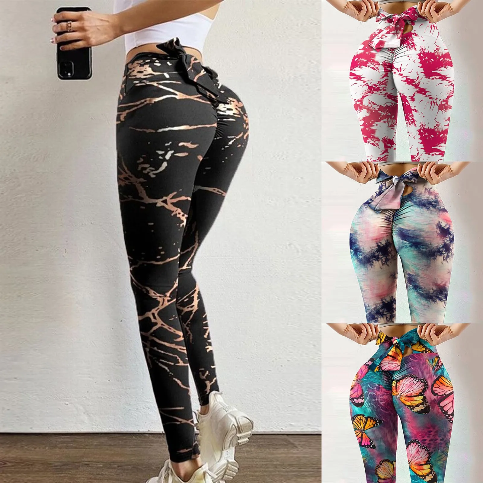 Женские Леггинсы для йоги с бантом, с высокой талией, с защитой от ...