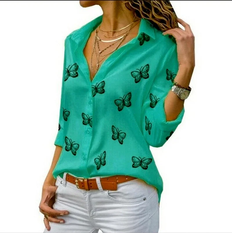 Женские рубашки с принтом бабочки, женские блузки с длинным рукавом...