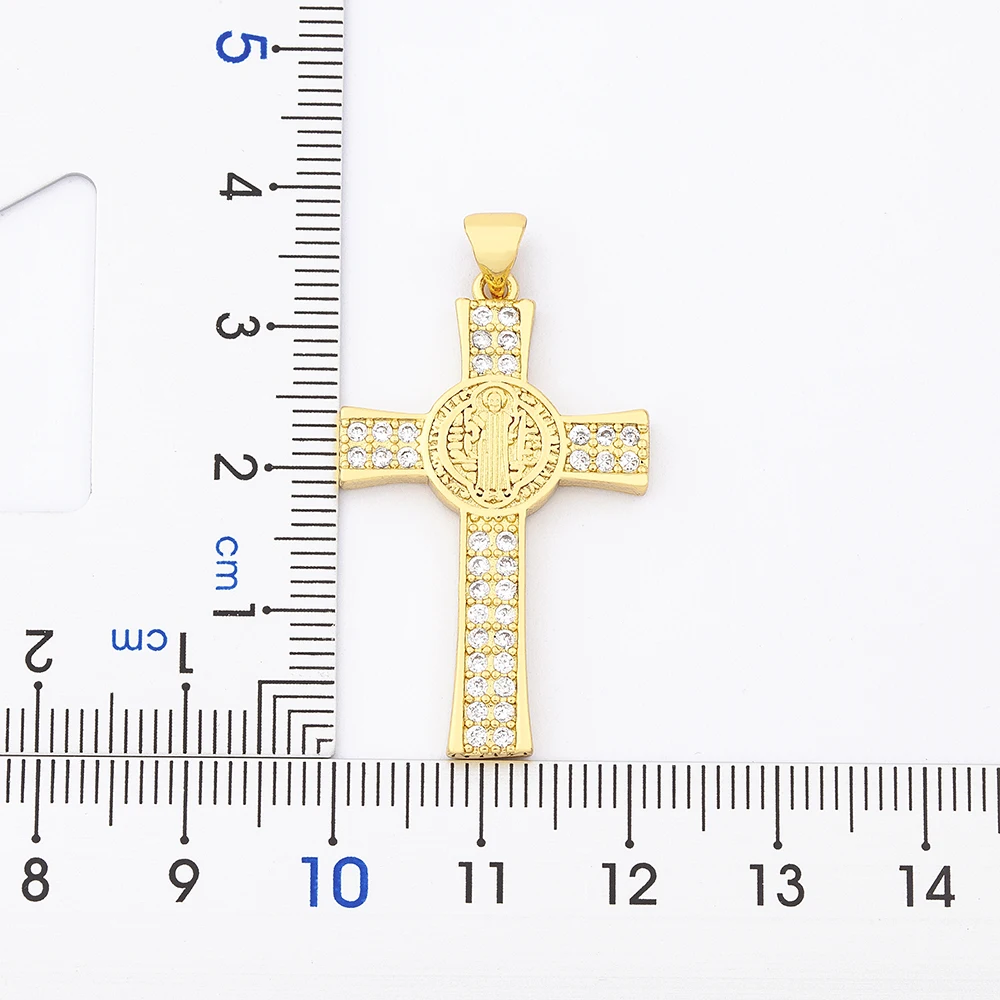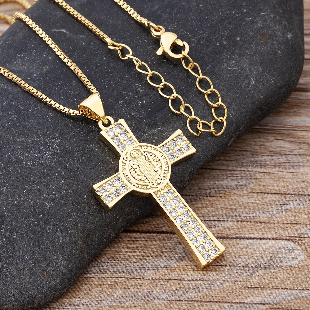 Модное ожерелье с золотым крестом из кубического циркония, высокое качество, кристалл, подвеска в виде креста, длинная цепочка, медное CZ, христианские украшения