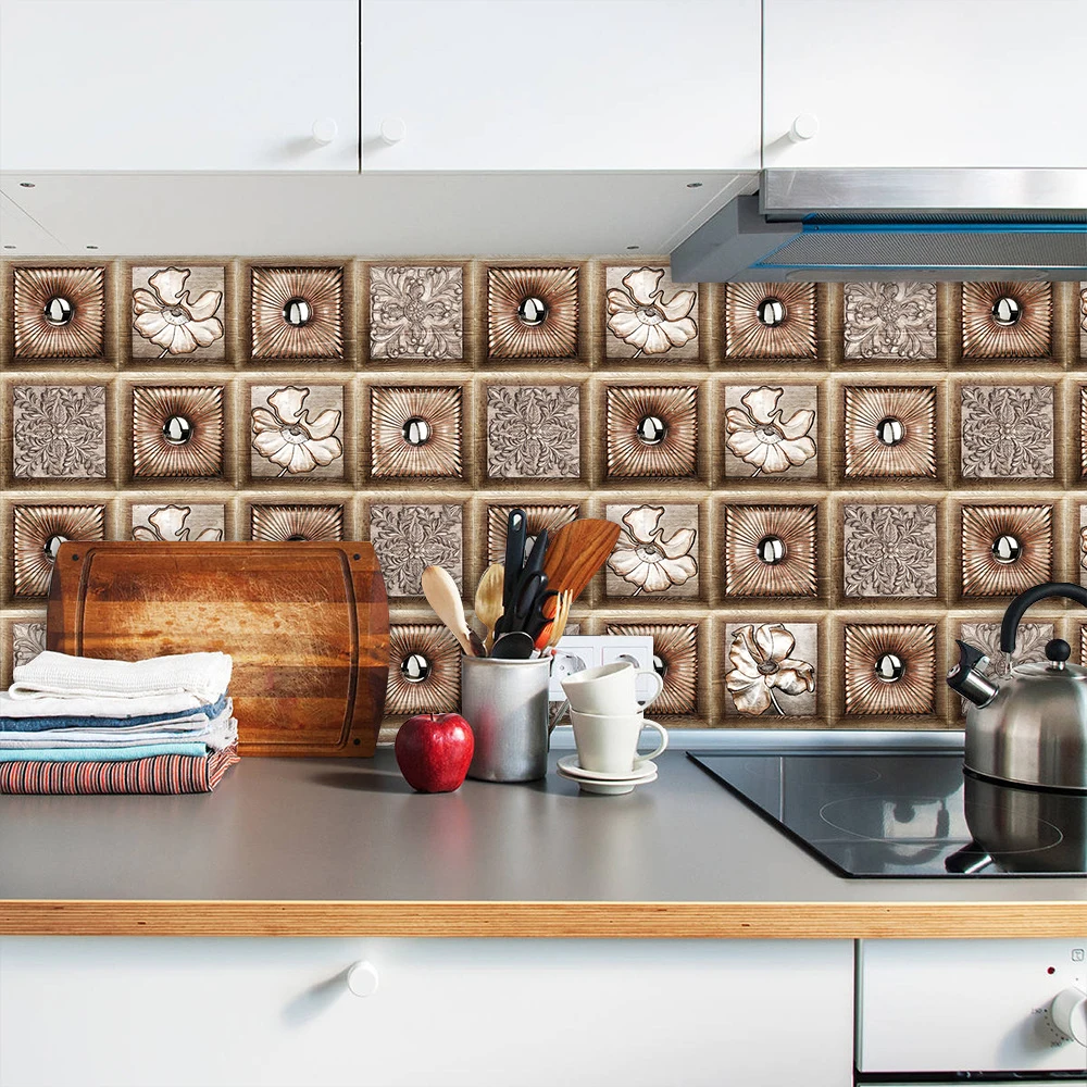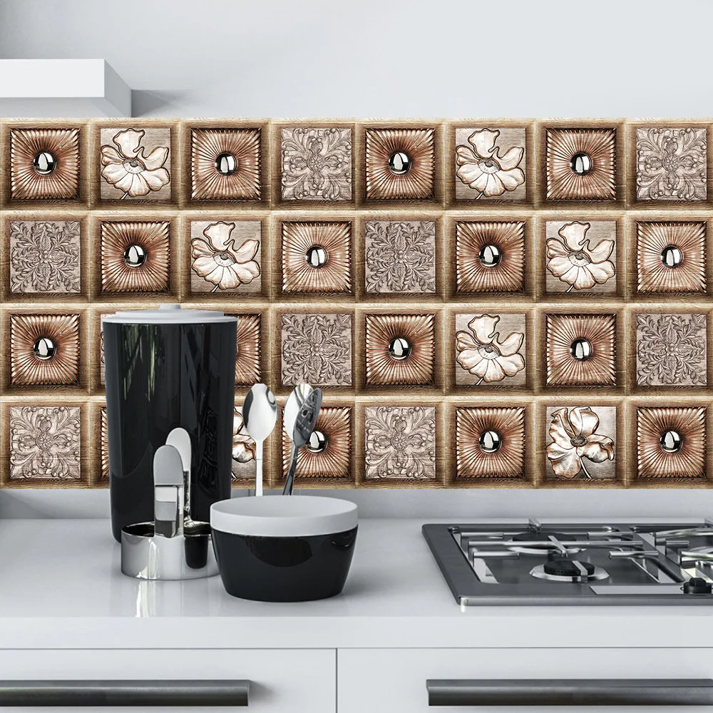 10 шт. китайский Стиль Фотофон в ретро стиле с изображением деревянного зерна текстурный настенный Стикеры Кухня Ванная комната умывальник Водонепроницаемый высокой плотности изображения ПВХ Наклейки на стены