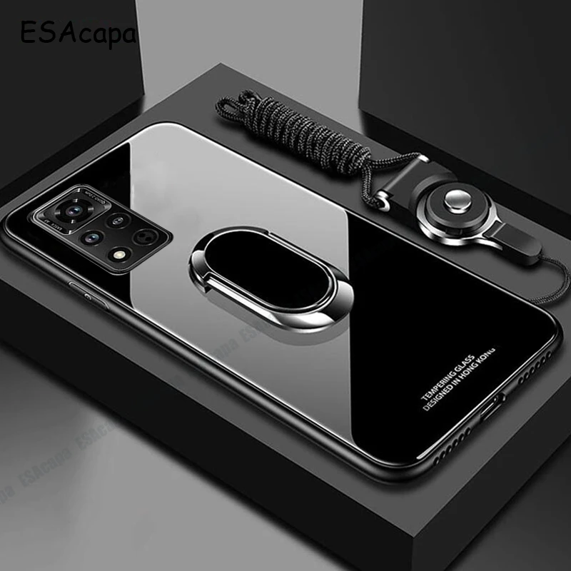 Жесткий чехол из закаленного стекла для телефона Huawei Honor V40 9S 9X Pro, магнитное кольцо, подставка, держатель, задний Чехол для Huawei Y6P Y5P со шнурком