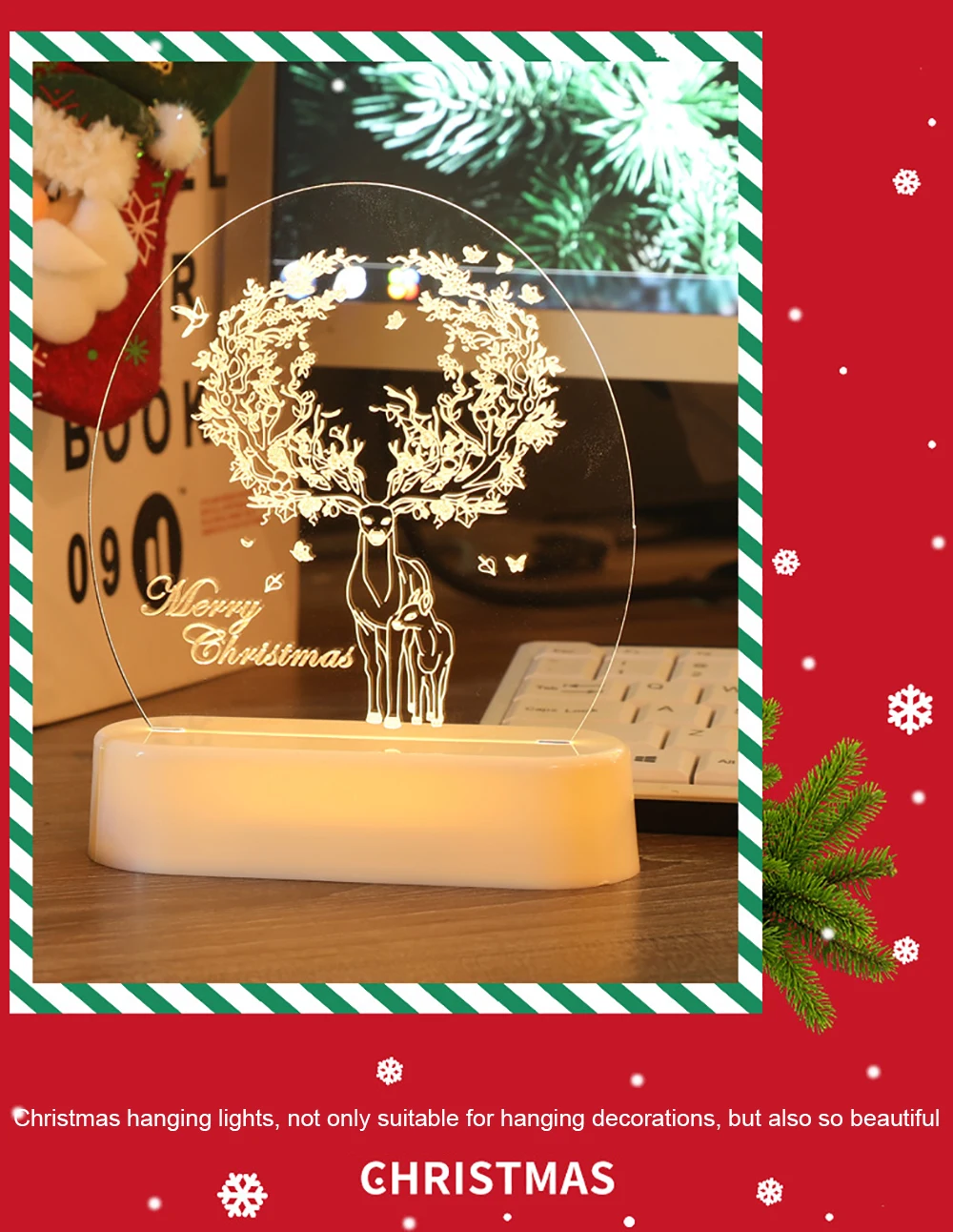 Светодиодный Рождественский декоративный светильник, аксессуары для домашнего декора, 3D светильник, рождественские праздничные подарки, гирлянда s узоры с Санта-Клаусом