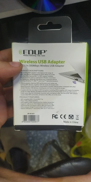 EDUP 300Mbps беспроводной USB WiFi адаптер для Windows, MacOS, LinuxОписание:EP-M1557-это адаптер nano size usb wifi, компактный и красивый дизайн, который идеально подходит для ПК и ноутбука. Набор микросхем REALTEK нового поколения обеспечивает высокую скорость и сигнал.Он также имеет хорошую совместимость, он может работать с Windows, MacOS и Linux. Это хороший вариант для обновления вашего ПК и ноутбука с лучшей функцией Wi-Fi. Вы можете наслаждаться быстрым wifi сигналом, когдаИ куда бы вы ни отправились. Мягкая функция AP также может поделиться wifi для ваших мобильных телефонов.Характеристики:Чипсет RTL8192EUСтандарт IEEE 802,11 a/b/g/nUSB 2,0Встроенные антенны 1dBiЧастота 2,4 ГГцСкорость передачи 2,4G до 300 Мбит/сПоддержка мягкого APОперационная система: Windows XP / Vista / 7 / 8/8,1/10/11. MAC OS X10.13.2/10.13.1/10,12. X/10,11. X/10,10. X/10,9. X/10,8. X/10,7. X/10,6. X/10,5. X/10,4. XПосылка:1*300 Мбит/с беспроводной адаптер1 * CD драйверПримечание:Перед использованием установите драйвер. Установите драйвер с компакт-диска или с http://www.szedup.com/support/driver-download/ep-n1557-driver/