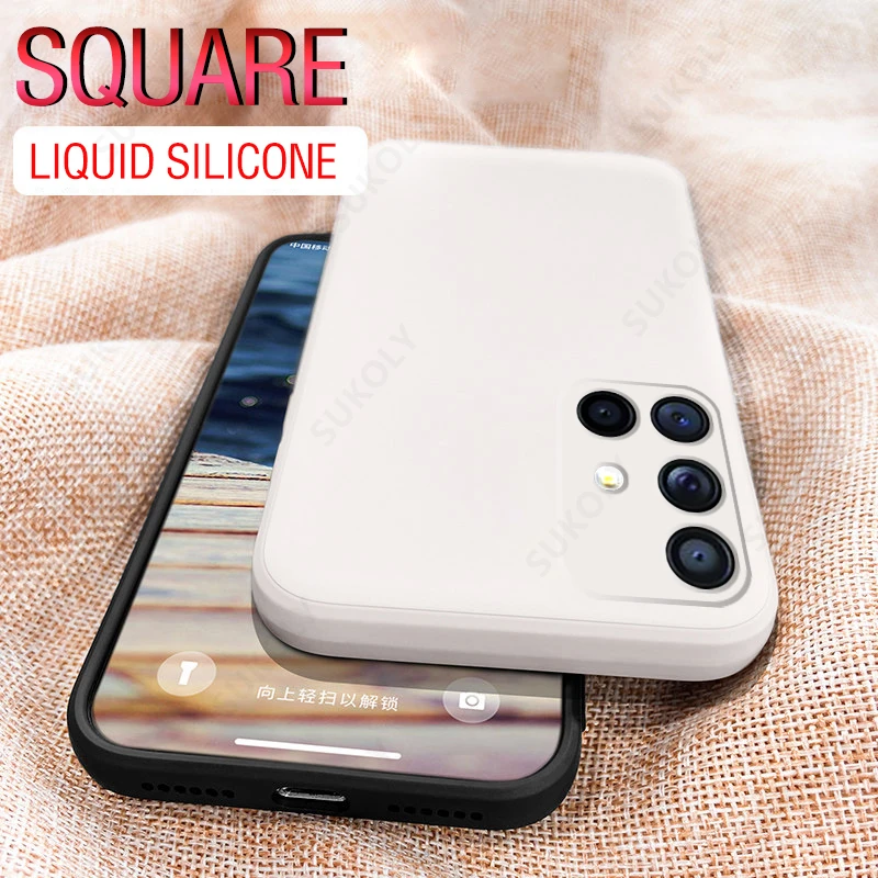 Квадратный чехол для телефона из жидкого силикона для Samsung A52 A...