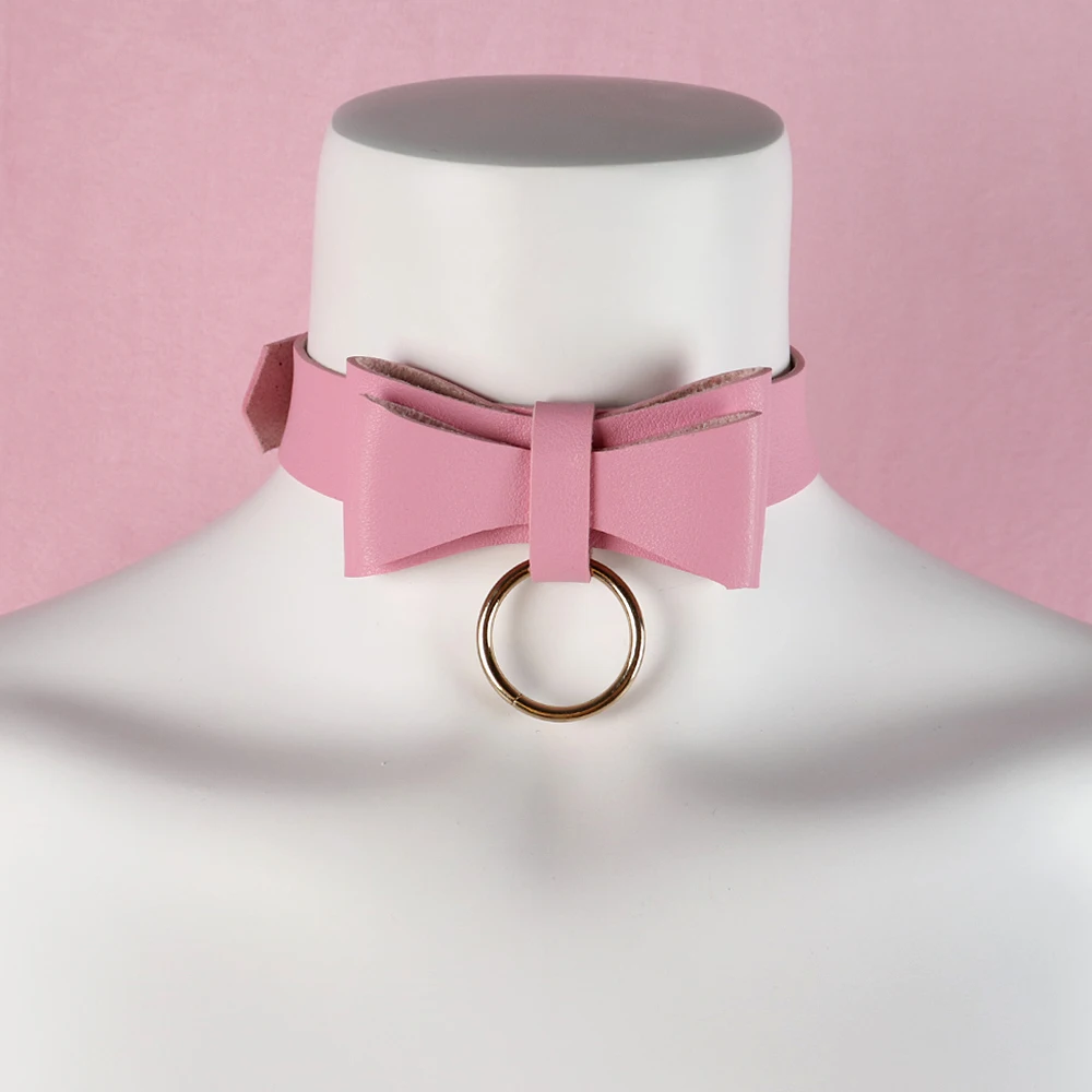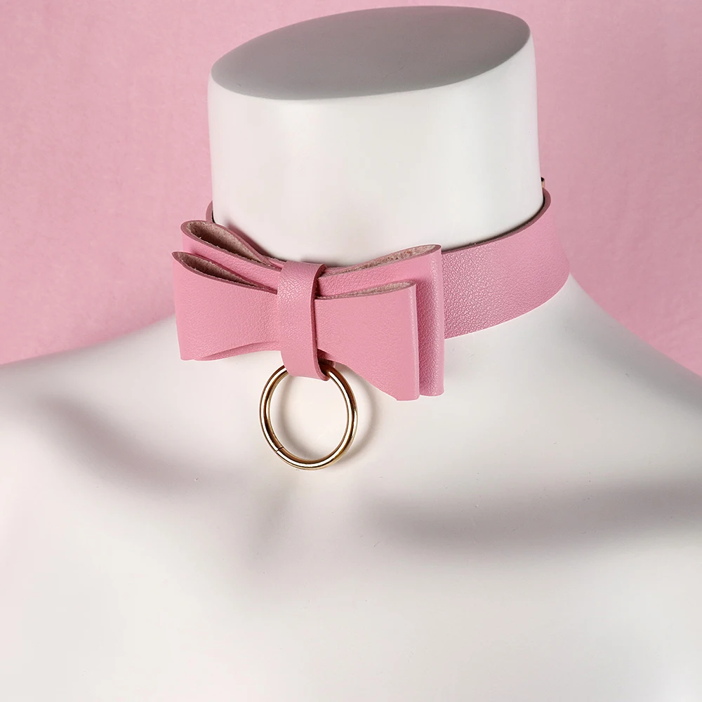Kawaii женское розовое ожерелье из искусственной кожи с бантом металлическое кольцо панк готический воротник чокер ручной работы шейный ремень Новое поступление