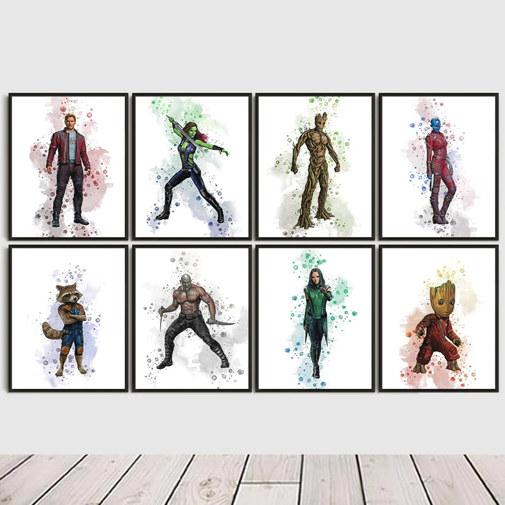 Картина на холсте стражи Галактики, Постер из фильма мстители, настенное искусство, картины с деревом, человеком грутом, для мальчика, детской спальни, домашний декор