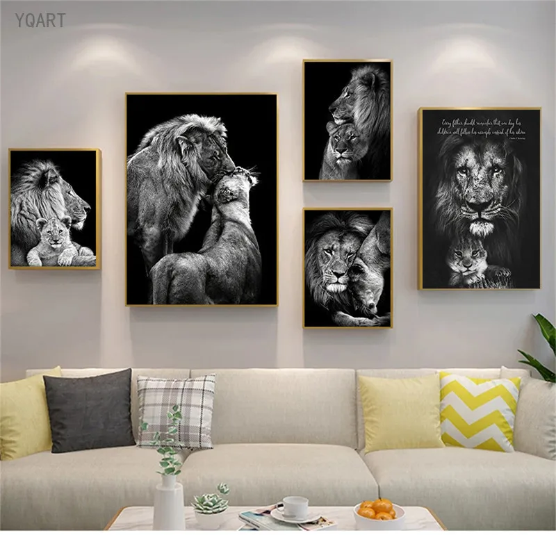 Черно-белые Львы животные Искусство Холст плакат дикий пейзаж живоп...