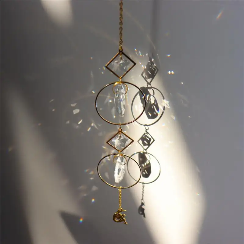 С украшением в виде кристаллов ветряной колокольчик с украшением в форме подвеска Звезда Луна Защита от солнца в стиле Ловца снов покрытием, расшиты разноцветными бусинами и свисающие для наружного и внутреннего декора сада