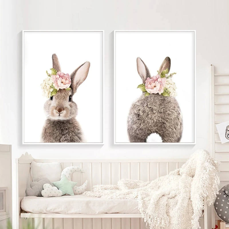 Скандинавская животная, кролик, холст, плакат для детской, зайчик, ...