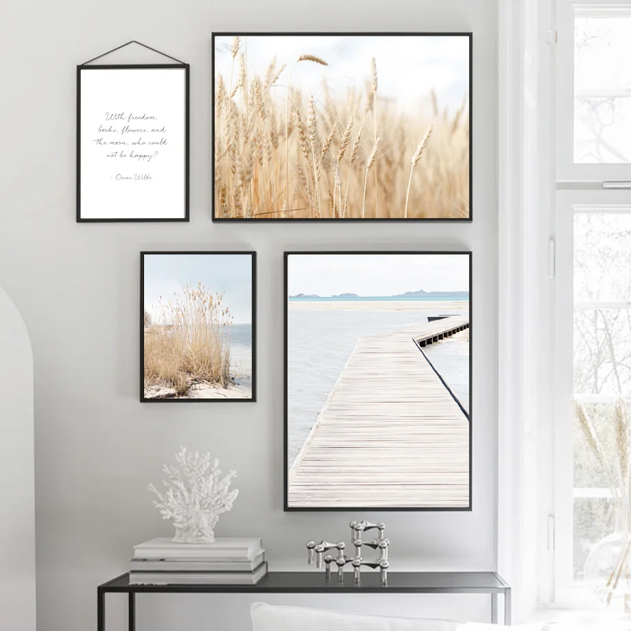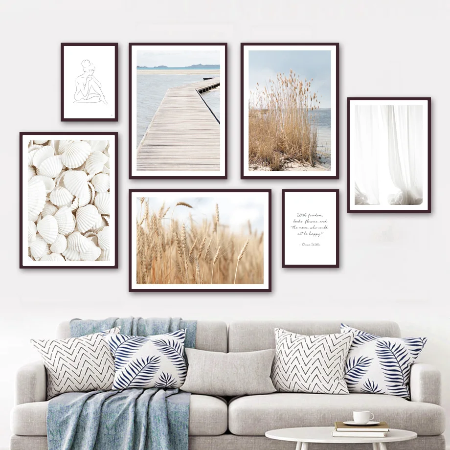 Пляжная трава, морской мост, БЕЛЫЕ РАКУШКИ, пшеничная занавеска, настенная Художественная печать, холст, картина, скандинавский плакат, Декор, фотографии для гостиной