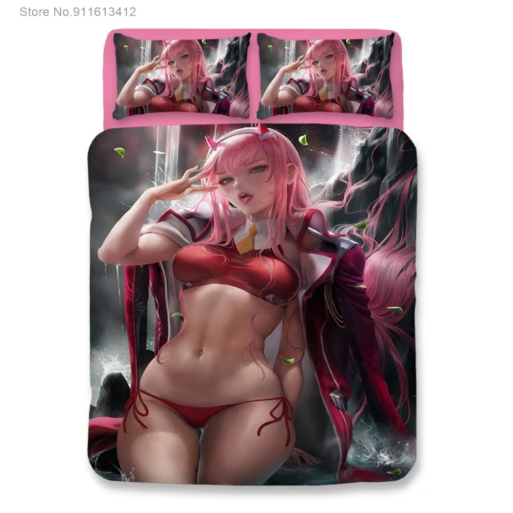 Комплект из 3 предметов, сексуальное бикини, Комплект постельного белья с 3D принтом, милый пододеяльник для девочек, Комплект постельного белья для спальни, односпальное покрывало для королевы