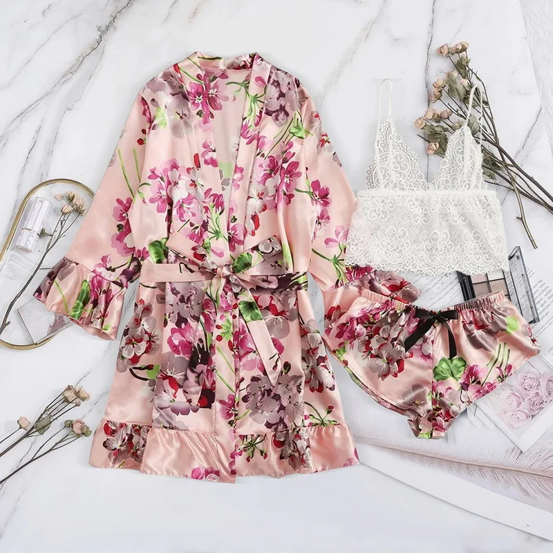 Пижама с принтом комплект шелковистые Для женщин 3 предмета, одежда...