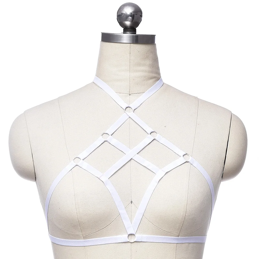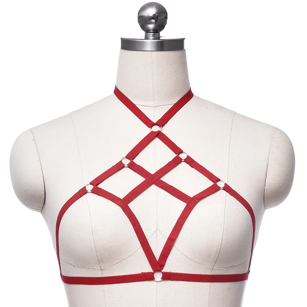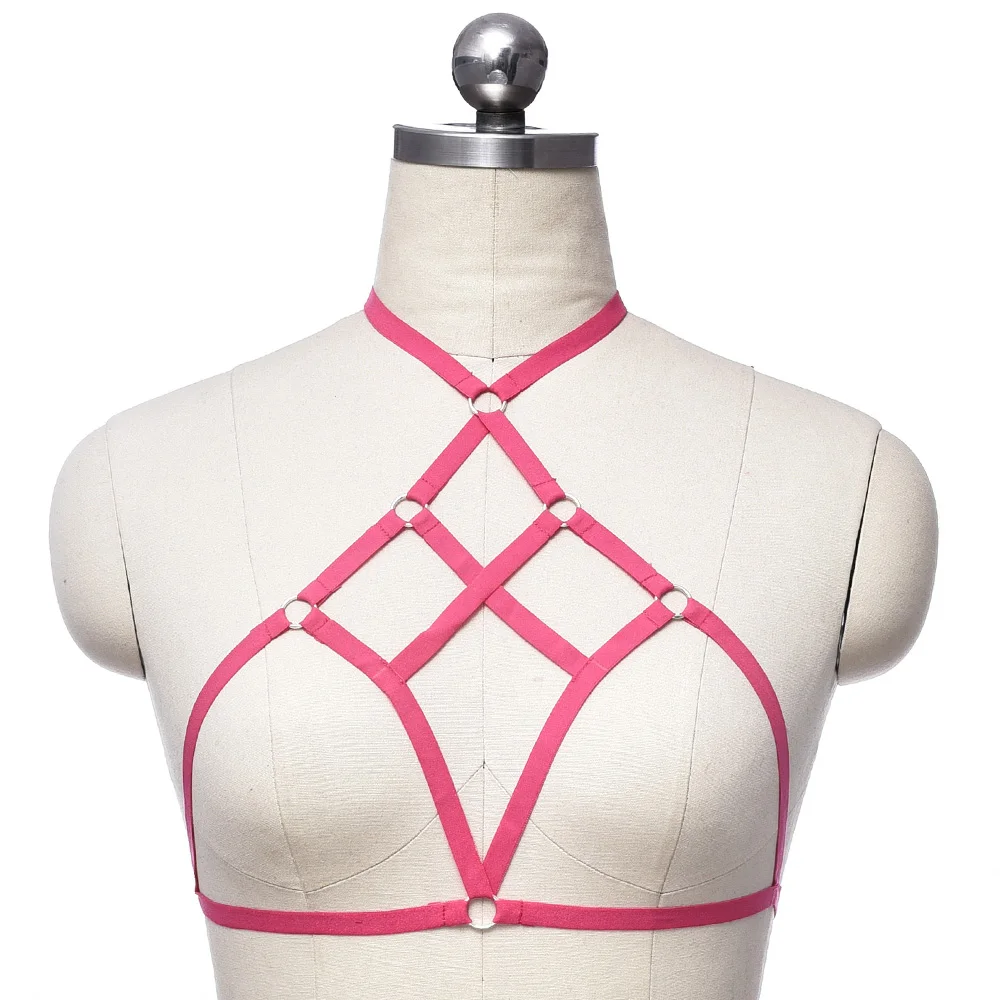 Рейв одежда кроп Топы клетка бюстгальтер пастельный, готический бондаж тела жгут гот сексуальное женское белье бюстгальтер Фетиш привязной ремень