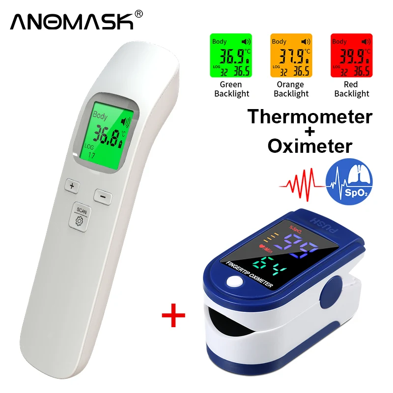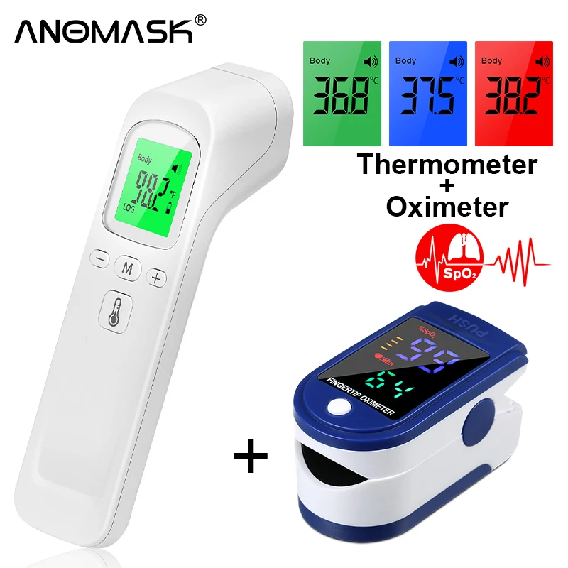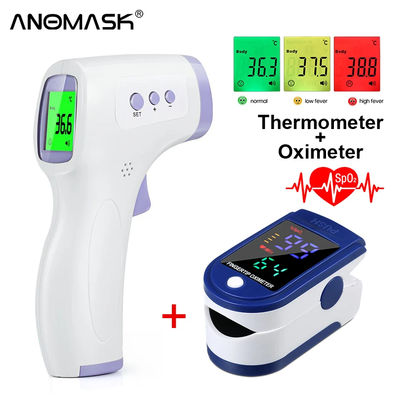 Пульсоксиметр на кончик пальца, монитор здоровья SPO2 PI PR, Бесконтактный инфракрасный термометр для лба и ушей